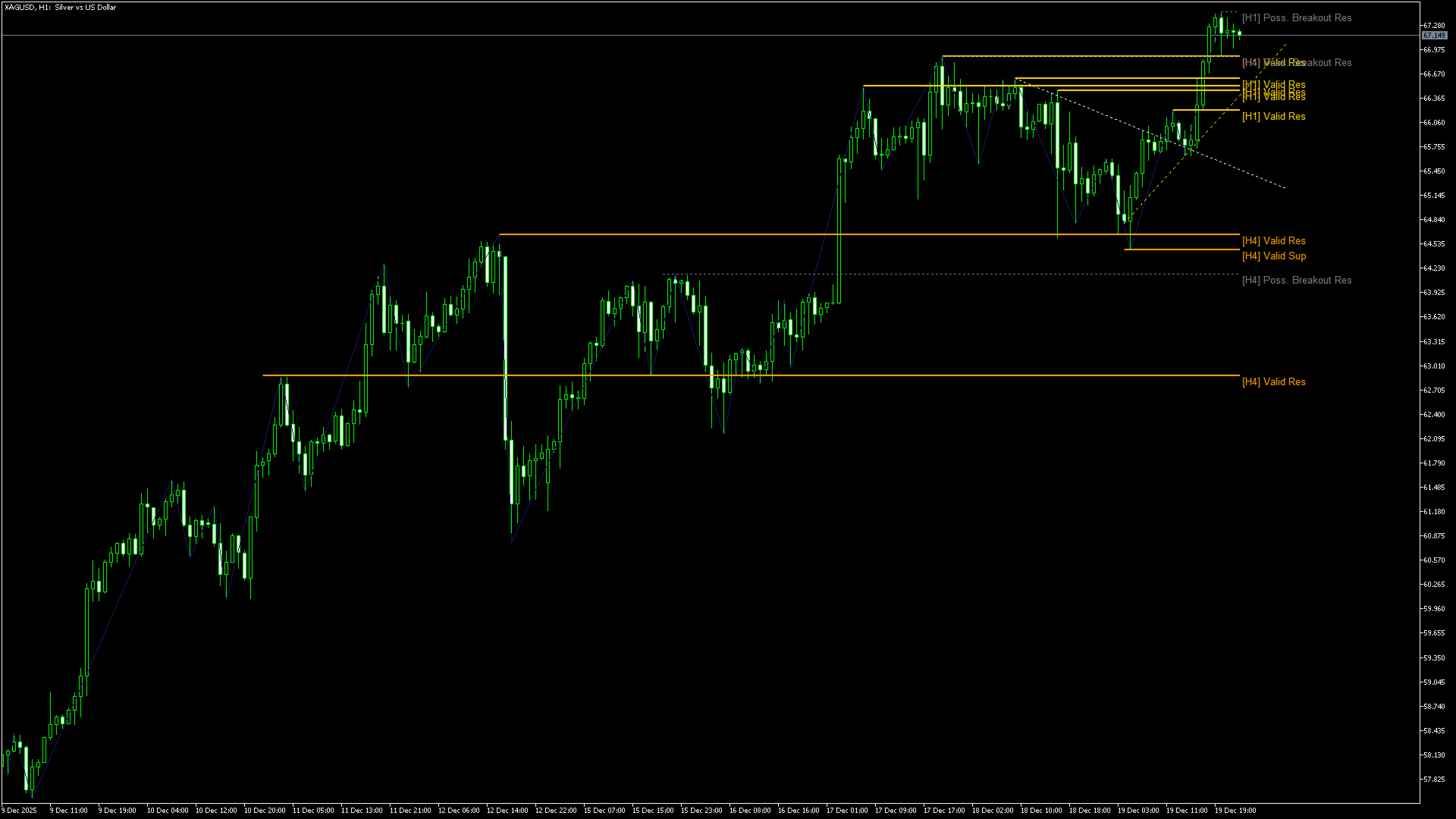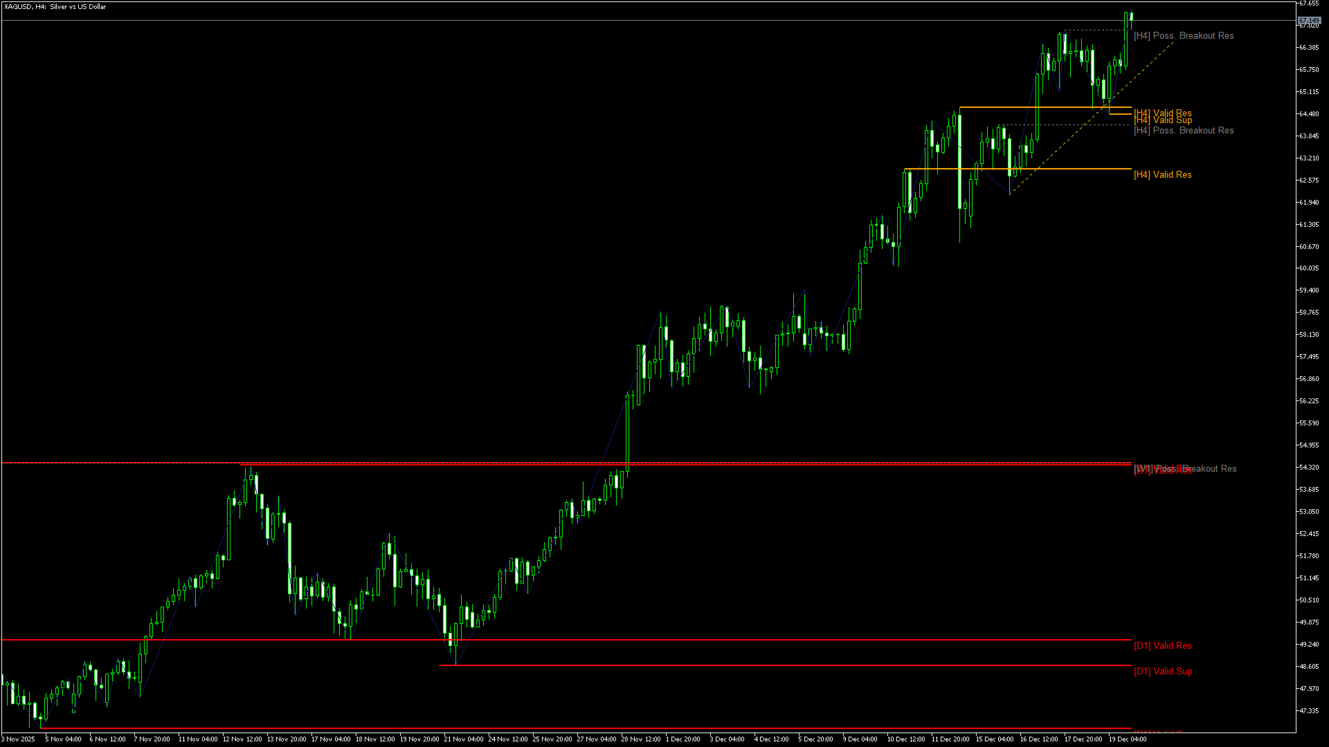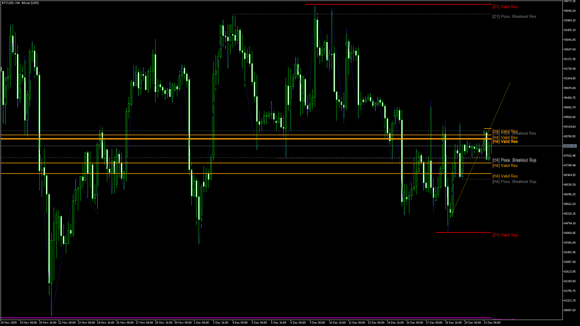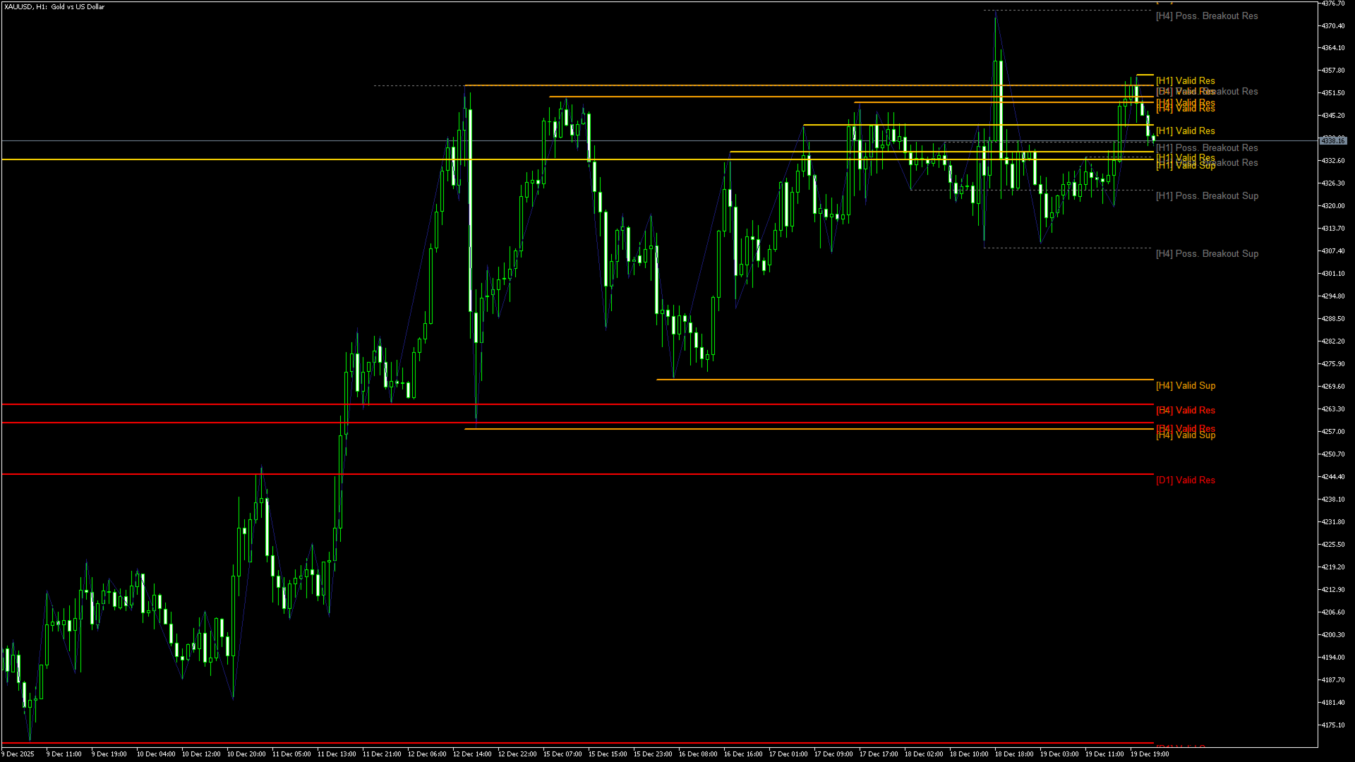 Valid Zones (Solid Lines & Rectangles): Identifies levels with significant structural backing. These are displayed as semi-transparent rectangular zones, highlighting the "area of interest" rather than a specific price point to account for market volatility.
