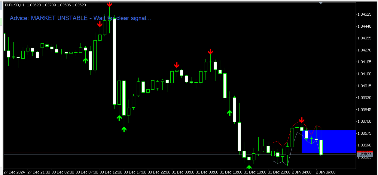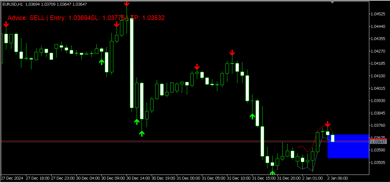 The indicator scans the market for price exhaustion and reversal patterns based on a customizable Analysis Period. When a potential reversal is detected at a local high or low, it generates a signal and draws a professional Target Box directly on your chart, representing the expected "Profit Zone."