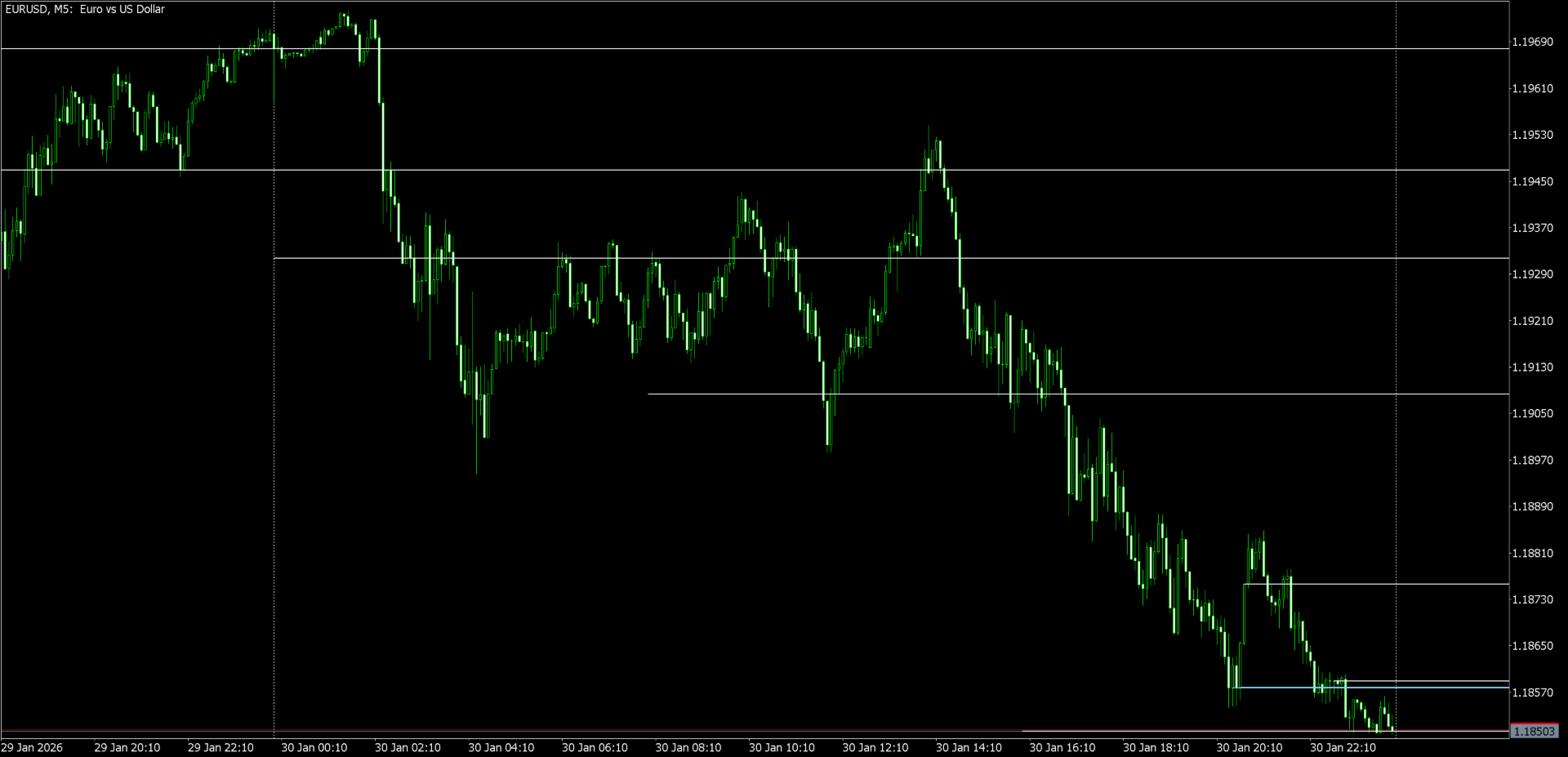 The lines are updated upon startup, when the timeframe changes, and with each new minute bar.