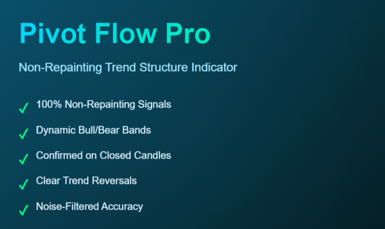 Pivot Flow Pro - Trend-structure market direction using pivot highs and lows to form a dynamic bull/bear band.