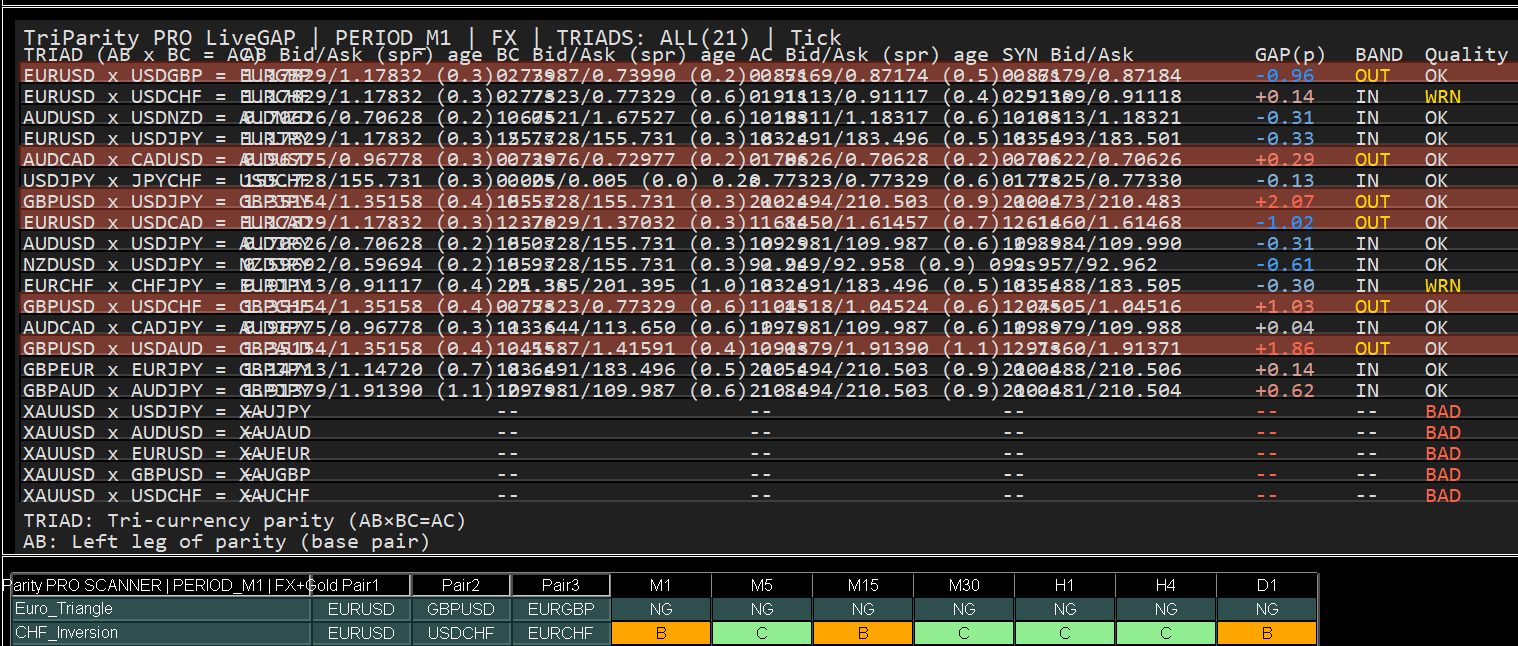 TriParity PRO LiveGAP Arbitrage Dashboard