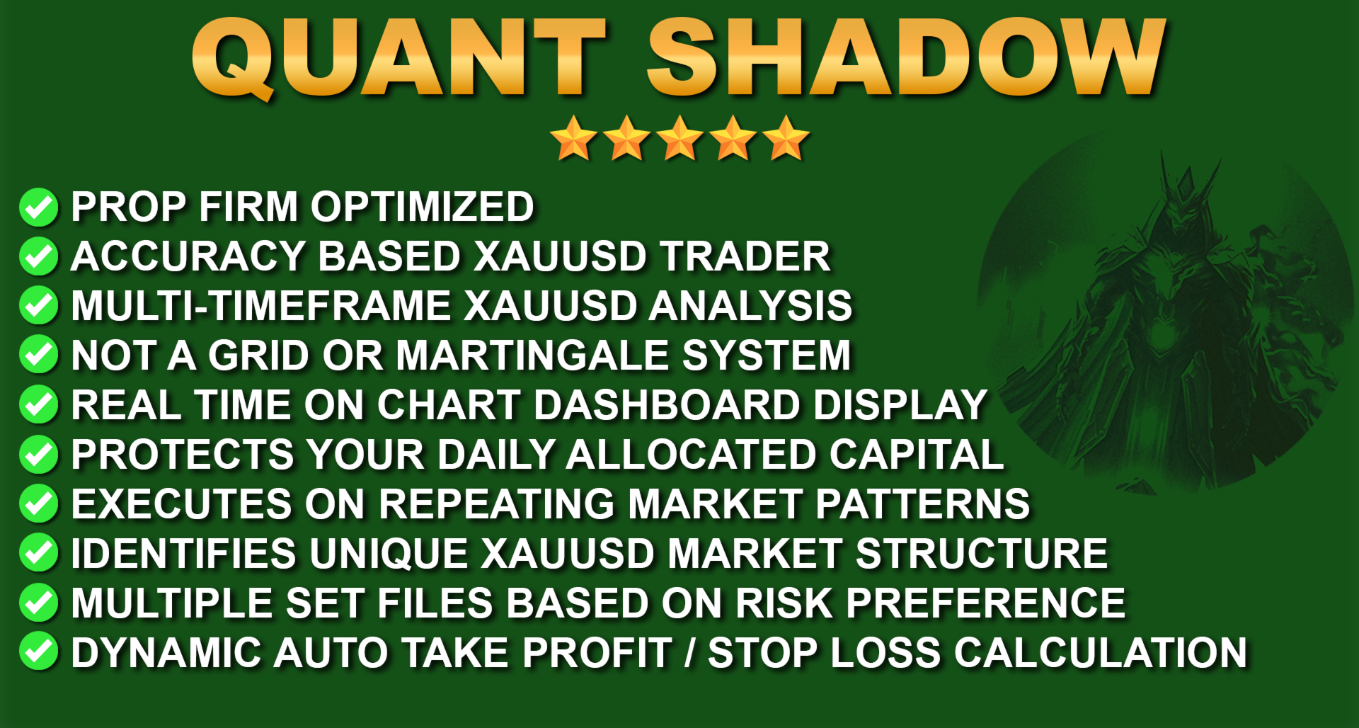 Quant Shadow non è solo un altro EA; è uno strumento di precisione chirurgica progettato per l'asset più liquido al mondo: l'Oro (XAUUSD). Mentre i trader retail rimangono intrappolati nel "rumore" dei timeframe inferiori, Quant Shadow opera nelle "ombre", mappando le zone di liquidità istituzionale ed eseguendo strategie di breakout stealth con una rigida protezione del capitale.