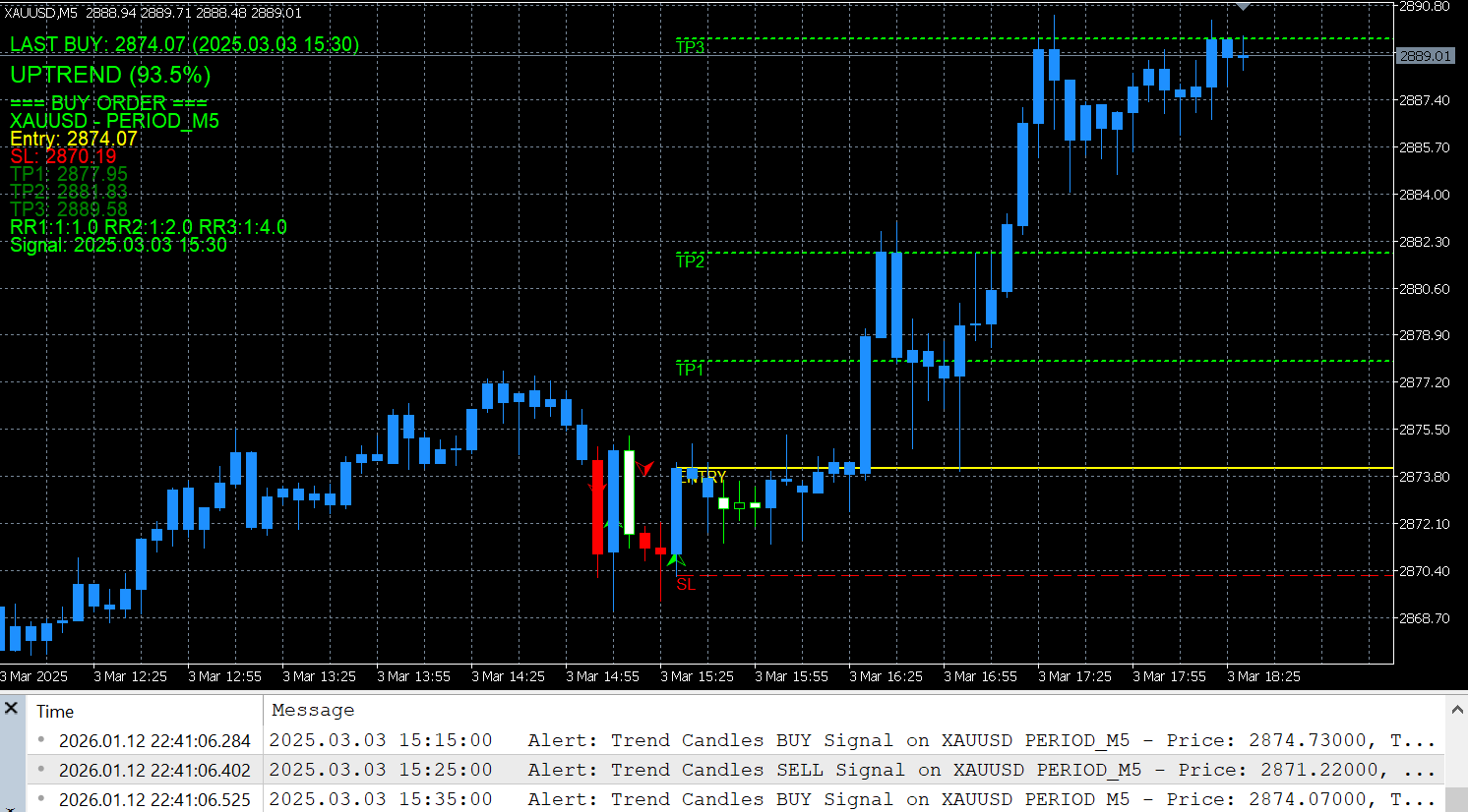 - Introduced Trend Strength Filter with configurable minimum strength (%) for signal confirmation.