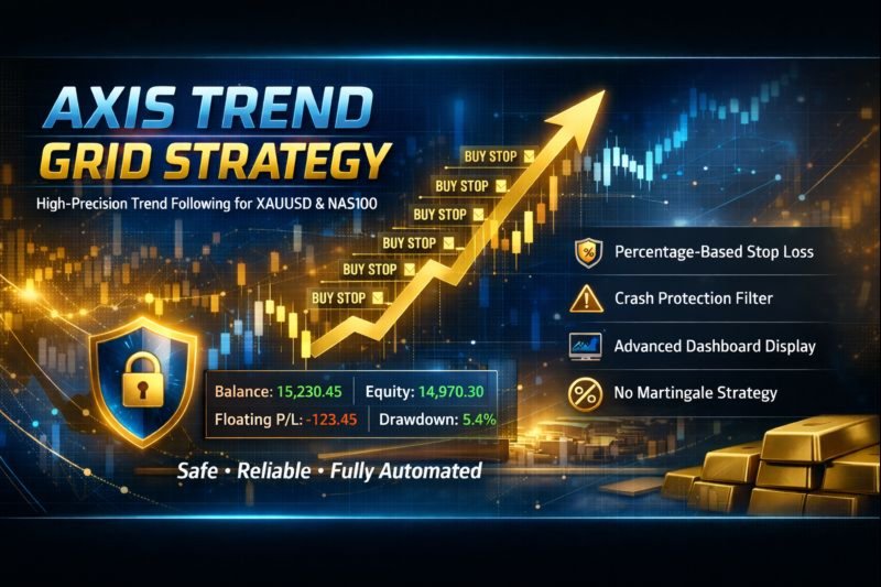 Axis Trend Grid Strategy is a fully automated Expert Advisor (EA) designed for high-precision trend-following on volatile instruments like XAUUSD (Gold) and NAS100 (Nasdaq). The system uses a unique "Ladder Entry" mechanism that capitalizes on market momentum by placing pending orders at calculated price levels only when a primary trend is confirmed. It does not simply deploy grids blindly like many other grid EAs out there.