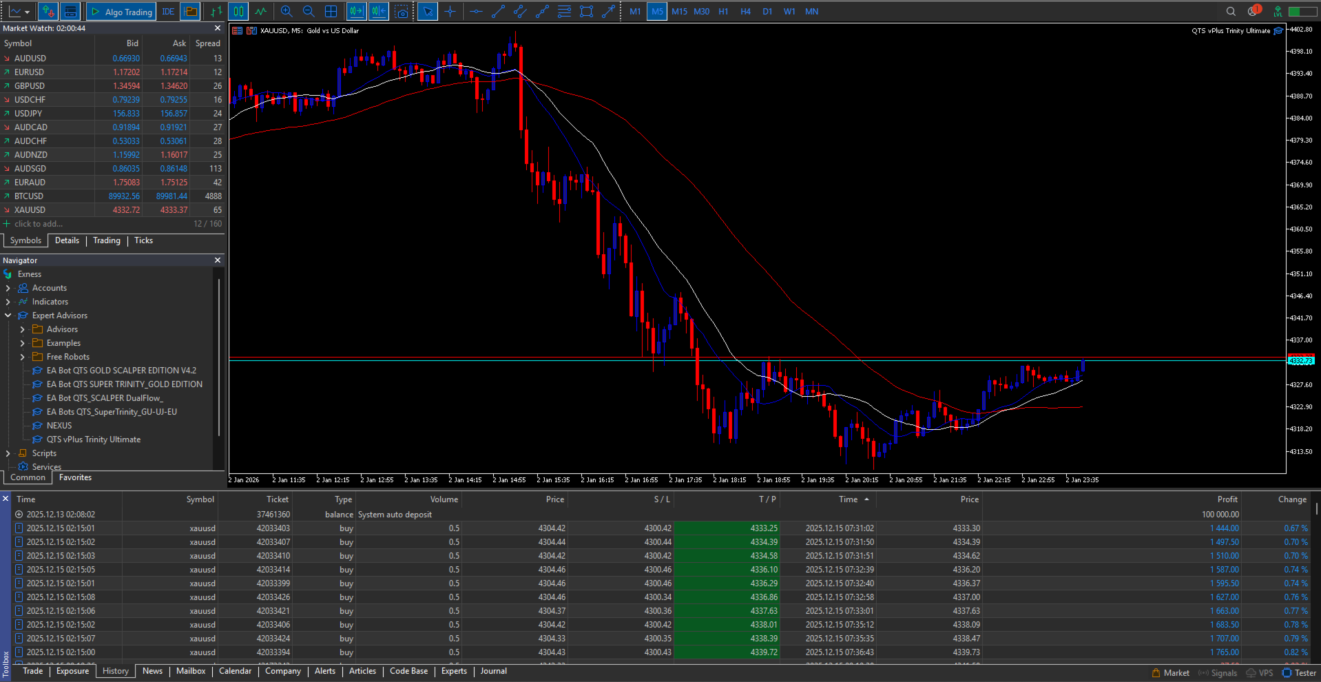 QTS vPlus TRINITY Ultimate è un Expert Advisor di livello professionale progettato per trader esperti e per chi si avvicina alle Prop Firm (FTMO, FXIFY, The5ers). A differenza degli indicatori standard, TRINITY combina tre dimensioni di trading istituzionale in un unico potente algoritmo: Struttura di Mercato, RSI Precision Sniper e Volume Order Flow.