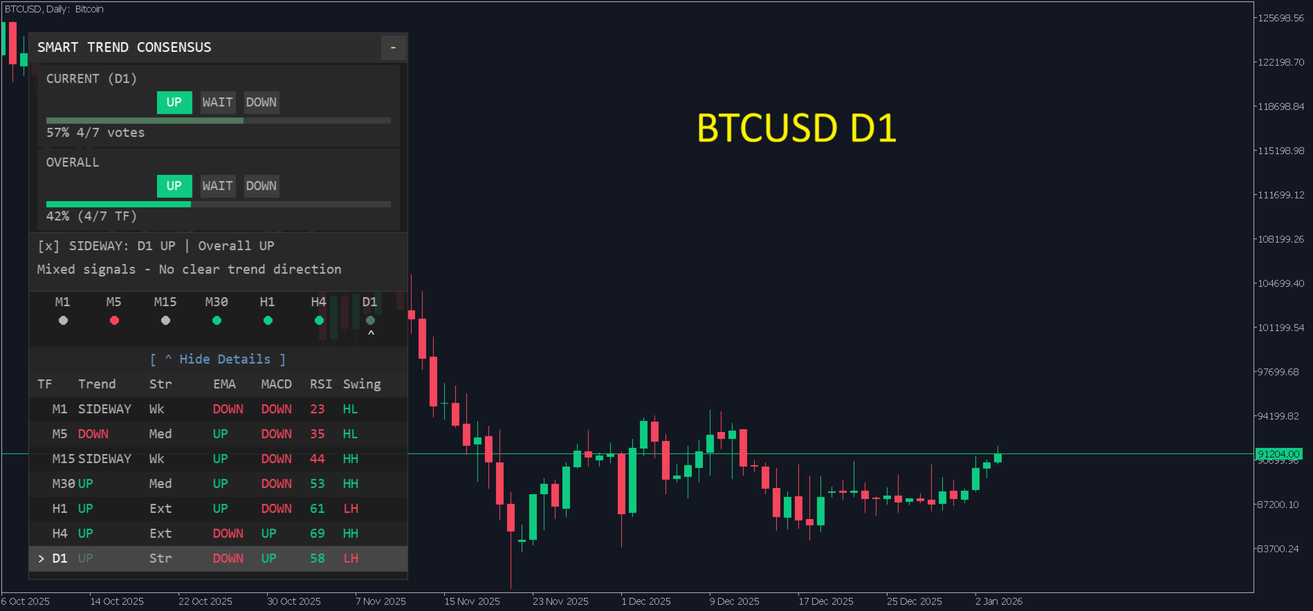 Smart Trend Consensus MT5 è uno strumento di analisi trend multi-timeframe.