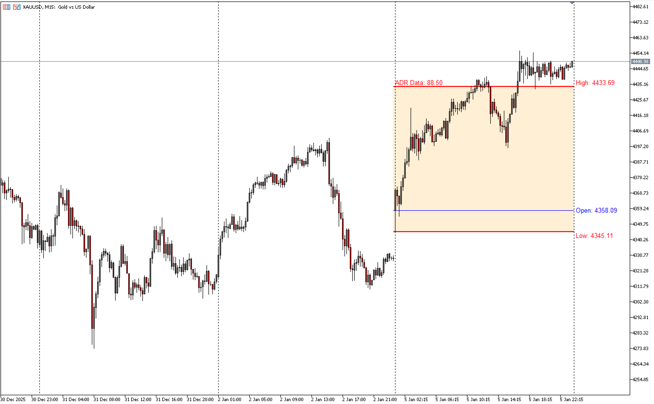 L’ADR Adattivo è un indicatore professionale per calcolare e visualizzare il range medio giornaliero (ADR).
