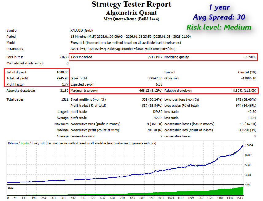 Algometrix Quant è un sistema di trading completamente automatizzato, progettato per i trader che mettono al primo posto la conservazione del capitale e la costanza nel lungo periodo. Basato sull'analisi quantitativa e su una logica robusta, questo Expert Advisor evita tattiche ad alto rischio, concentrandosi su setup ad alta probabilità con una gestione del rischio disciplinata.