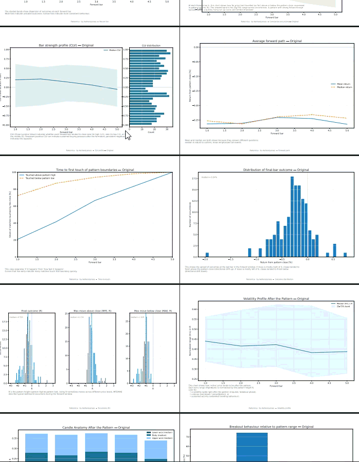 Load a “fingerprint” CSV template (OHLC), scan historical charts for similar price action, and export every match to a results CSV for later analysis and labeling. Includes a secondary formation detector (classic chart patterns) as a bonus feature.