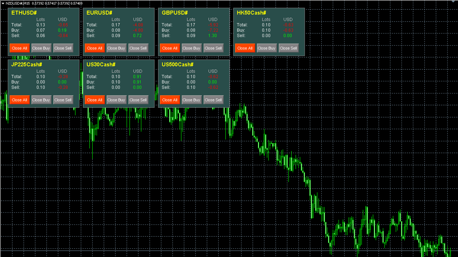 The Multi-Symbol Trade Manager is a professional utility tool designed for traders who trade multiple currency pairs or instruments simultaneously. Instead of flipping through dozens of charts to check your floating P/L, this tool automatically scans your entire account and displays every active symbol in a clean, dynamic grid layout on a single chart.