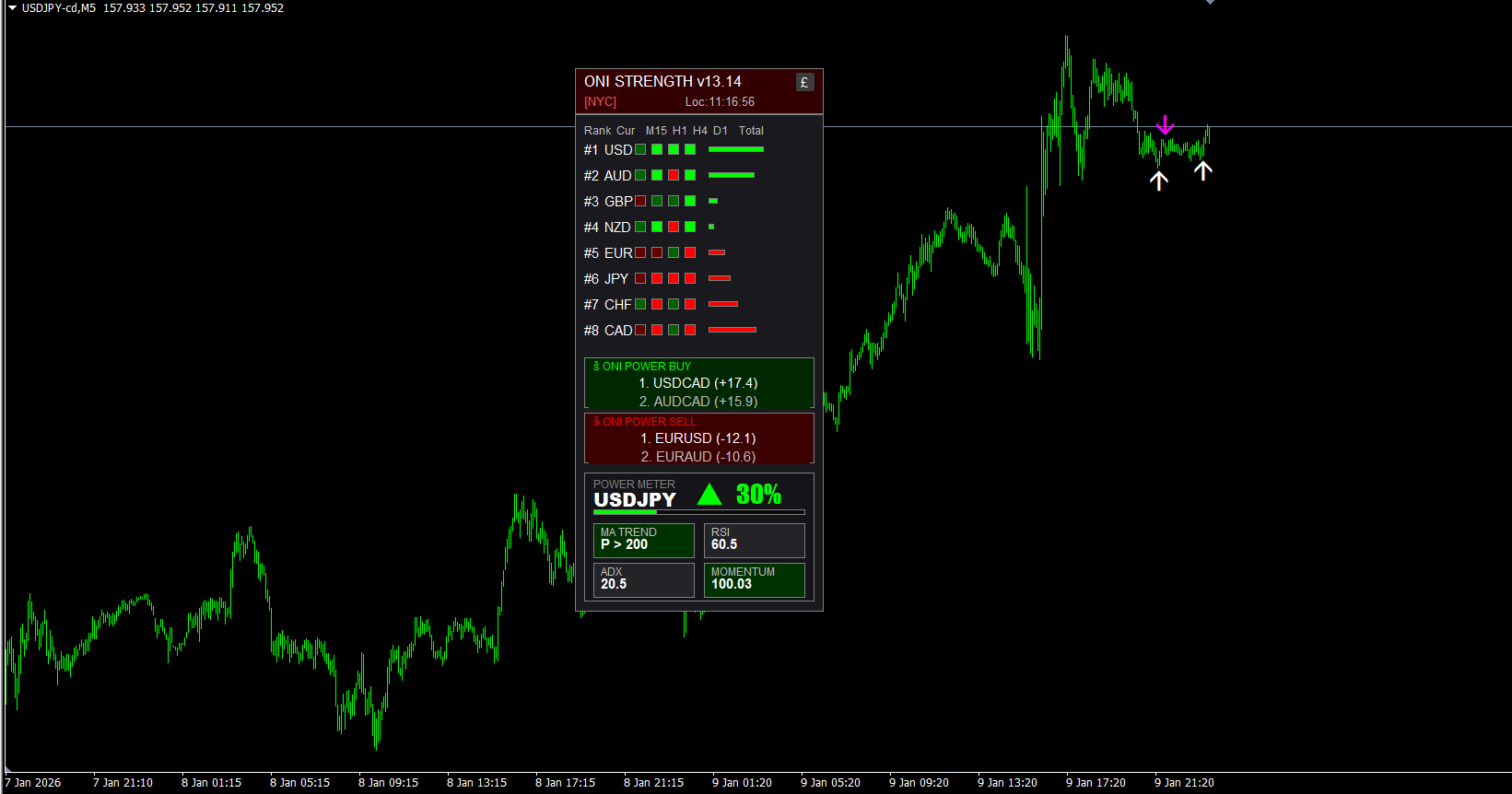 Oni Strength Pro is a professional-grade "Currency Strength & Trend Detection System" compatible with 28 Currency Pairs, GOLD, and Crypto.