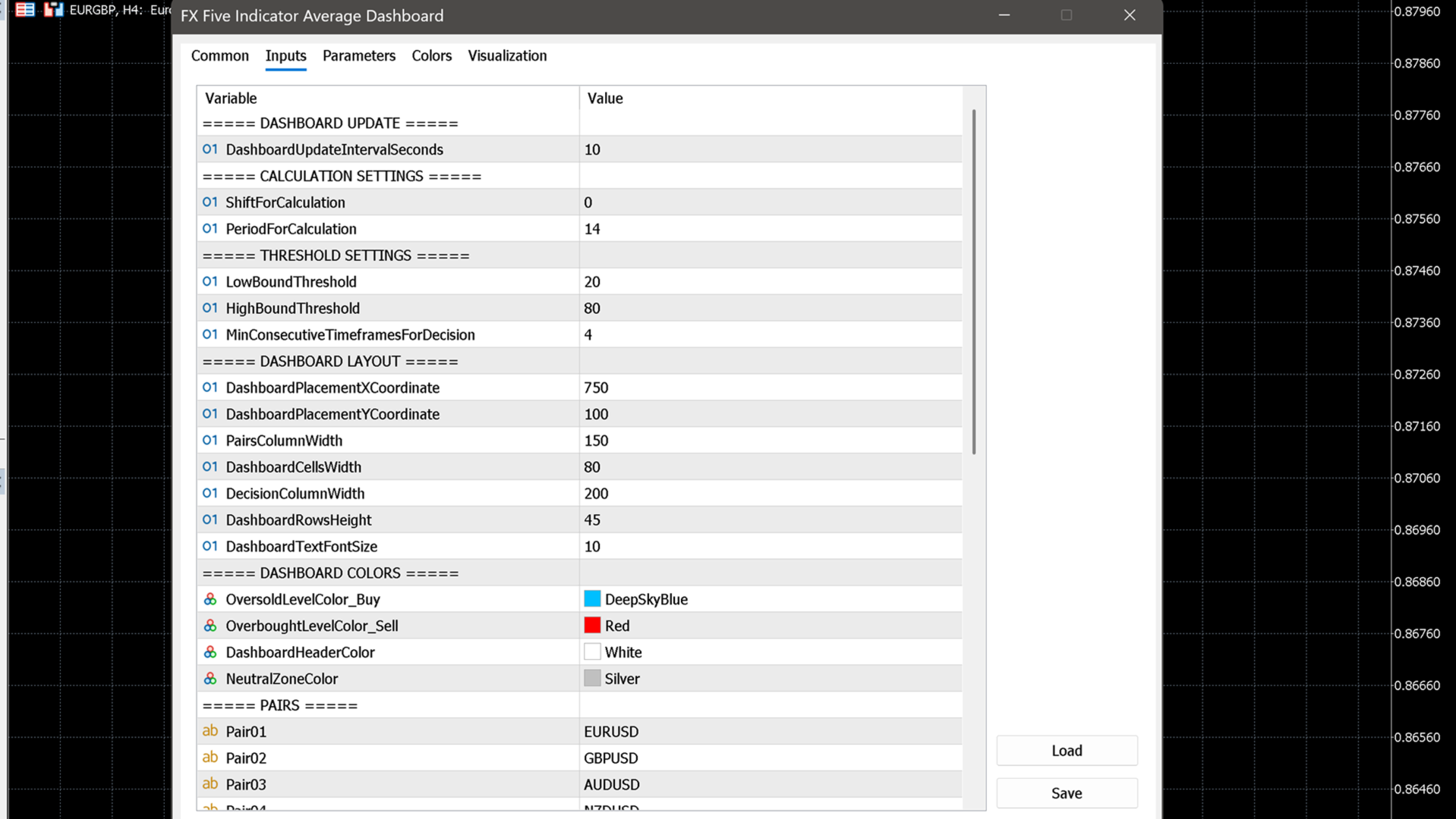 FX Five Indicator Average Dashboard