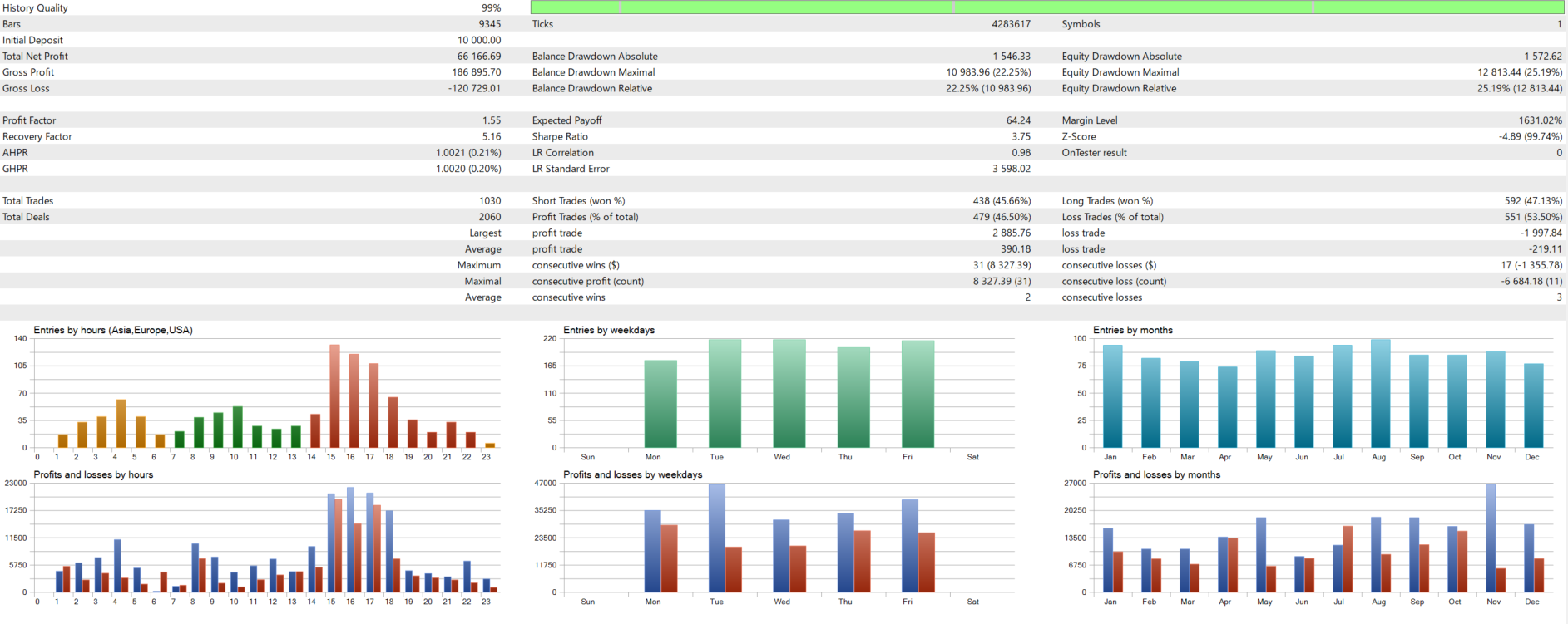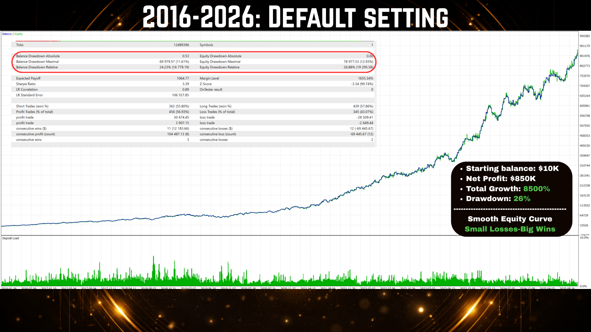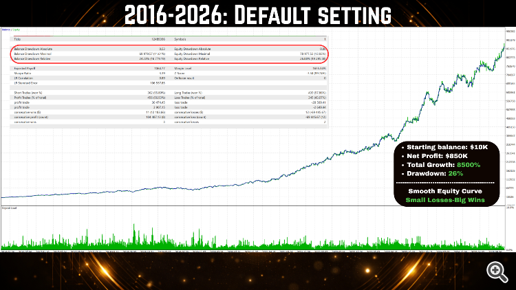 Although the EA can technically operate on H1 and H4, lower timeframes naturally contain more market noise, more false breakouts, and more unnecessary trades. This often leads to higher drawdown and less stable performance over time.