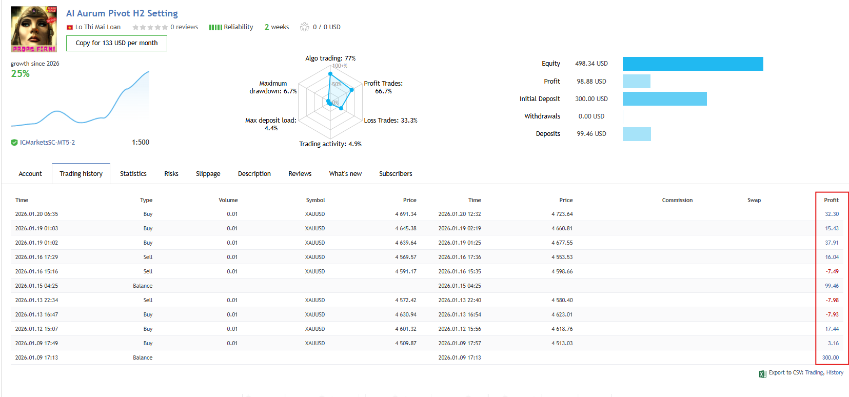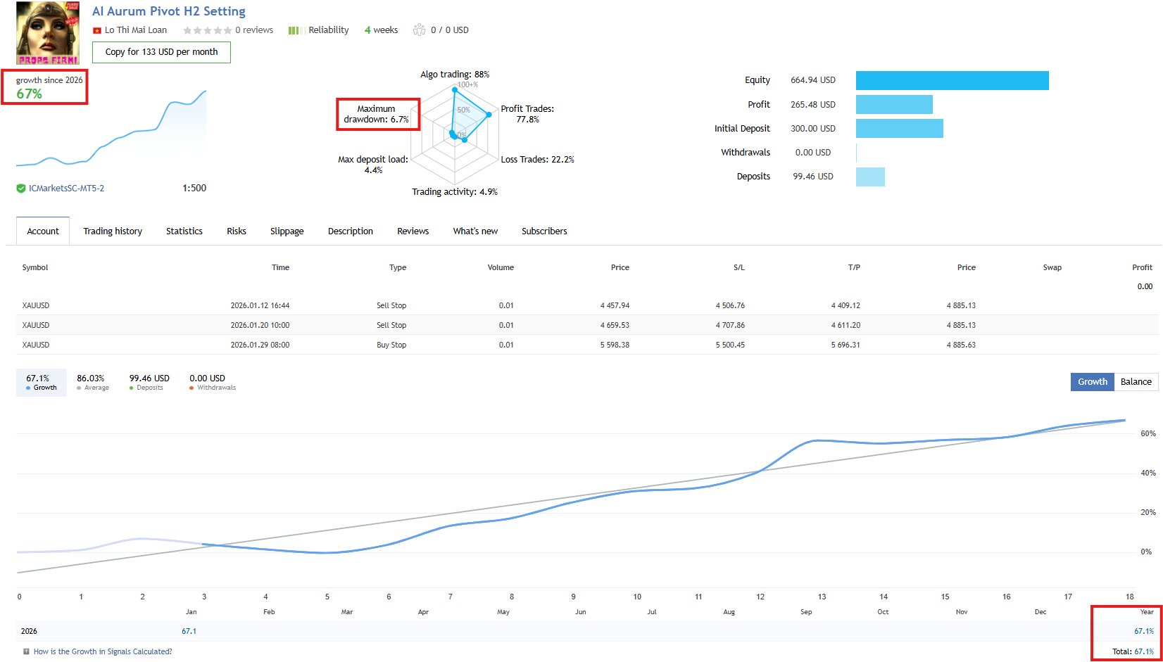AI Aurum Pivot H2 Setting is not designed to chase a high win rate. It is built on a professional trading principle: *small losses, large wins*. The system focuses on protecting capital first, then allowing profits to grow naturally over time.