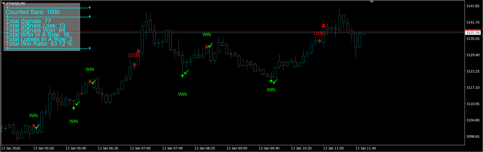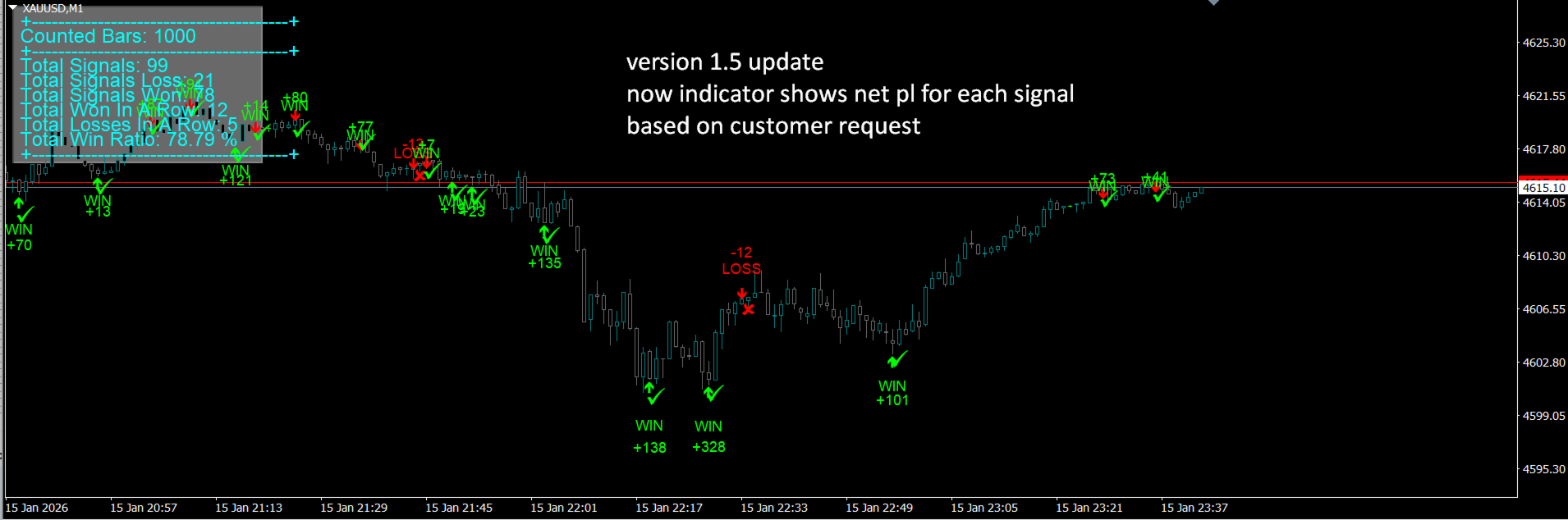 NESSUNA RIDIPINGENZA: L'indicatore non ridipinge le sue frecce in tempo reale;Una volta che viene data una freccia, questa rimarrà lì anche se il prezzo si muove nella direzione opposta.