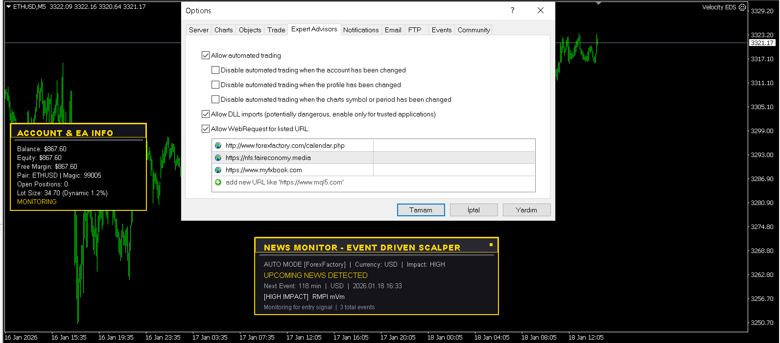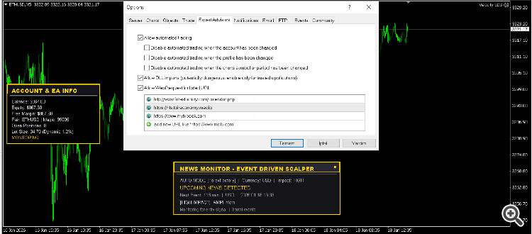 Before loading the EA onto the live chart, don't forget to set the Auto news mode to True in the input settings.