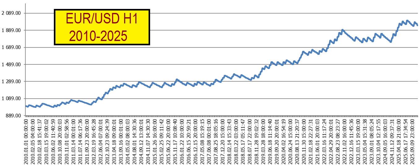 The EA is optimized for EUR/USD on the H1 timeframe, with predefined parameters adapted to stable and medium-trend market conditions.