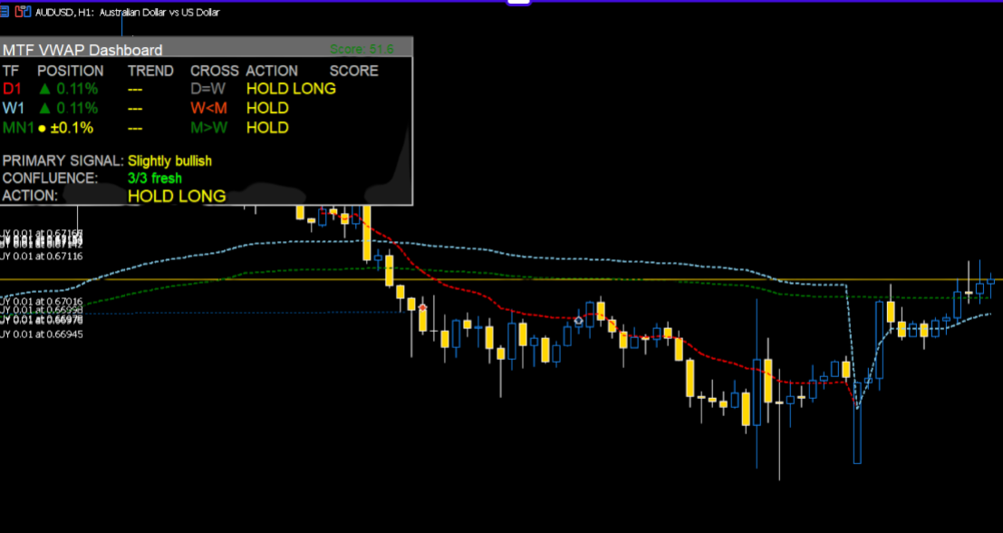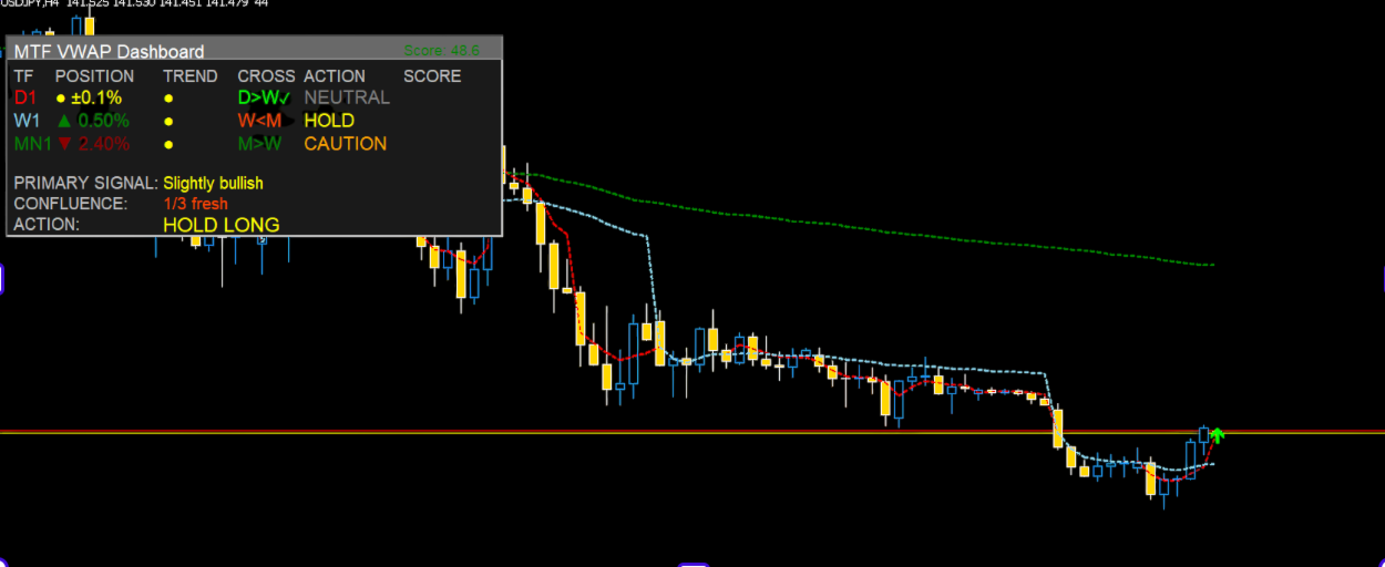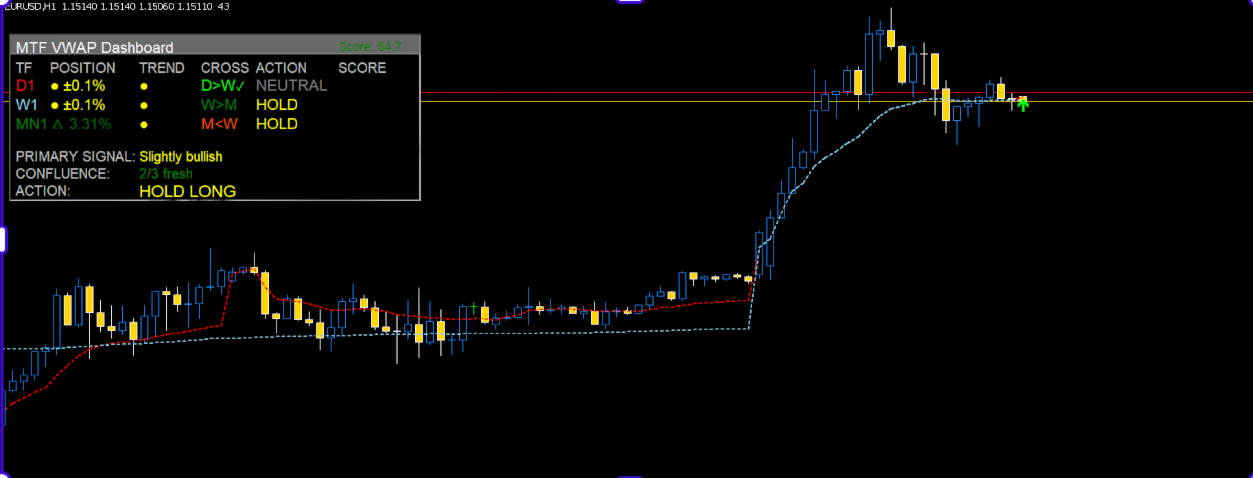 This indicator shows you where institutional money is flowing across multiple timeframes using Volume Weighted Average Price (VWAP) to identify high-probability trading zones.
