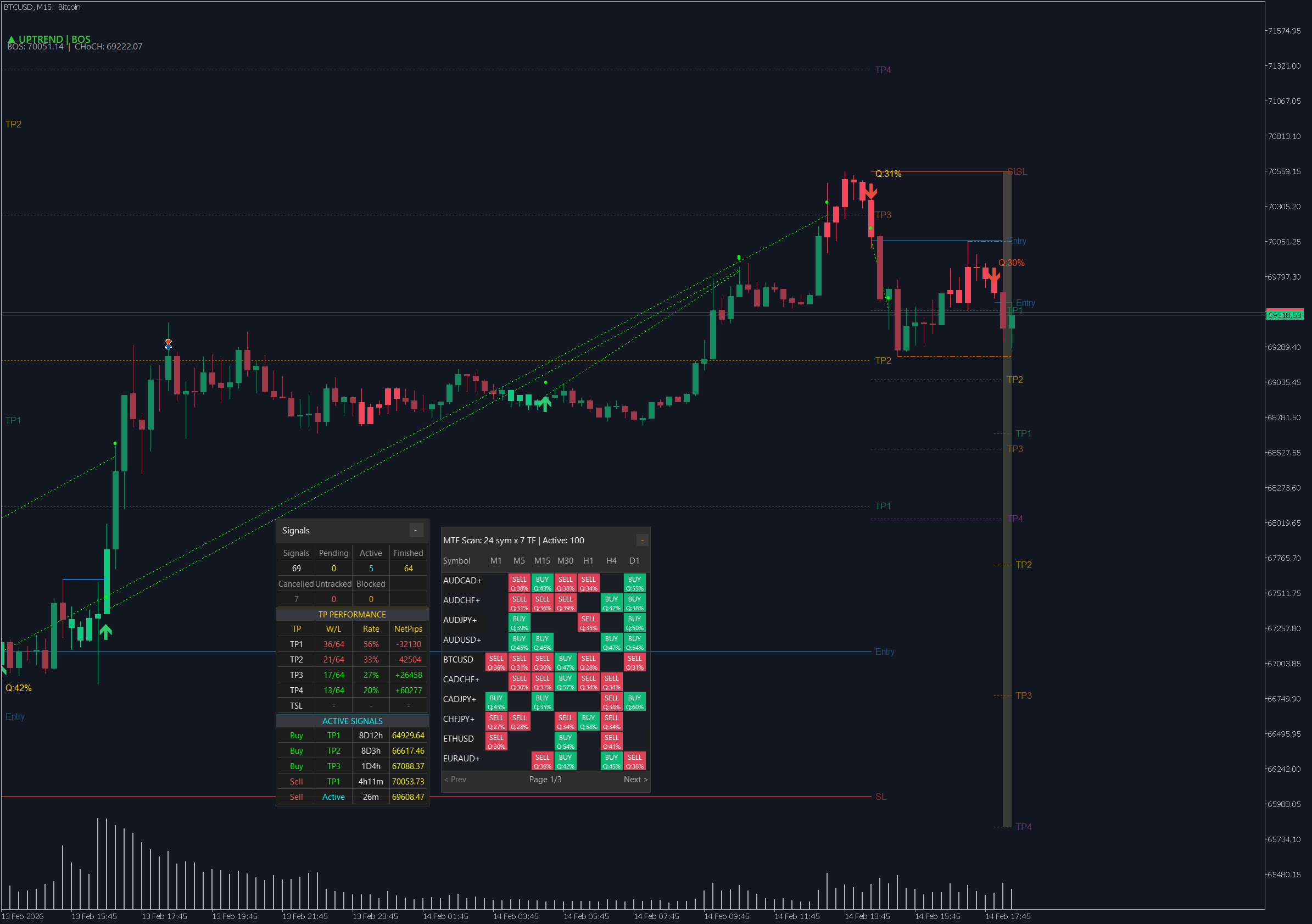 BTCUSD M15 SELL : A SELL signal has appeared on the BTCUSD M15 timeframe. With our upcoming dedicated Dashboard, this aligns perfectly with the recommended SELL criteria. This will make it much easier for Mirage Trading System users to decide whether to execute a trade based on the signal.