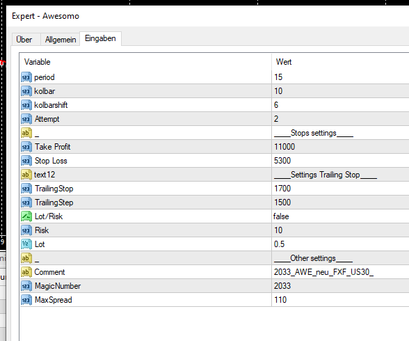 I bought Awesomo the other day. I'm thinking of using it with a yen account in the future. I want to adjust the risk according to the yen account, but I am in trouble because I can not make it less than "1" with the minimum number. Will you be able to enter up to one decimal place? I want to manage funds by putting a number such as "0.5" to reduce the risk. We look forward to hearing from you.Привет. Сделаю!