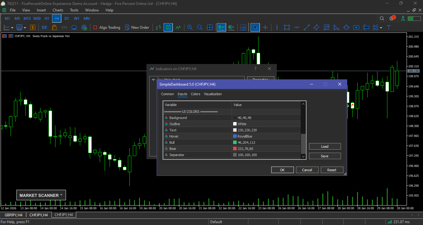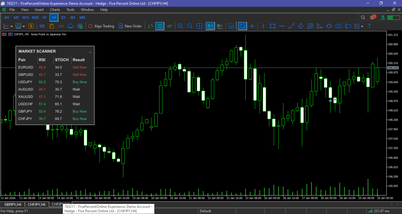 The Simple Dashboard is a dashboard where you can build your own strategy based on RSI, Stochastic, and Moving Average. You can define your own buy and sell signal conditions as you wish. For example, you can set a sell signal when RSI is at the 70 level and Stochastic is in a death cross, or even the opposite. The point is, set it however you like and apply your own custom configuration.