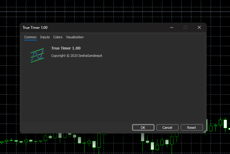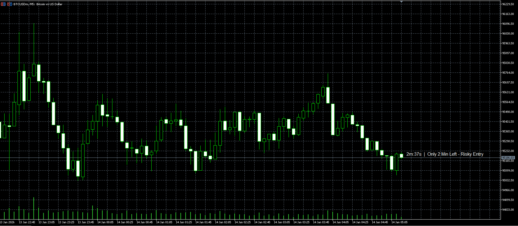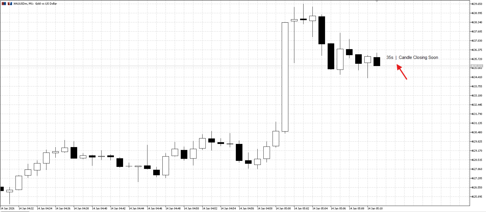 Real-time countdown timer (MM:SS) showing seconds until candle close on any timeframe.