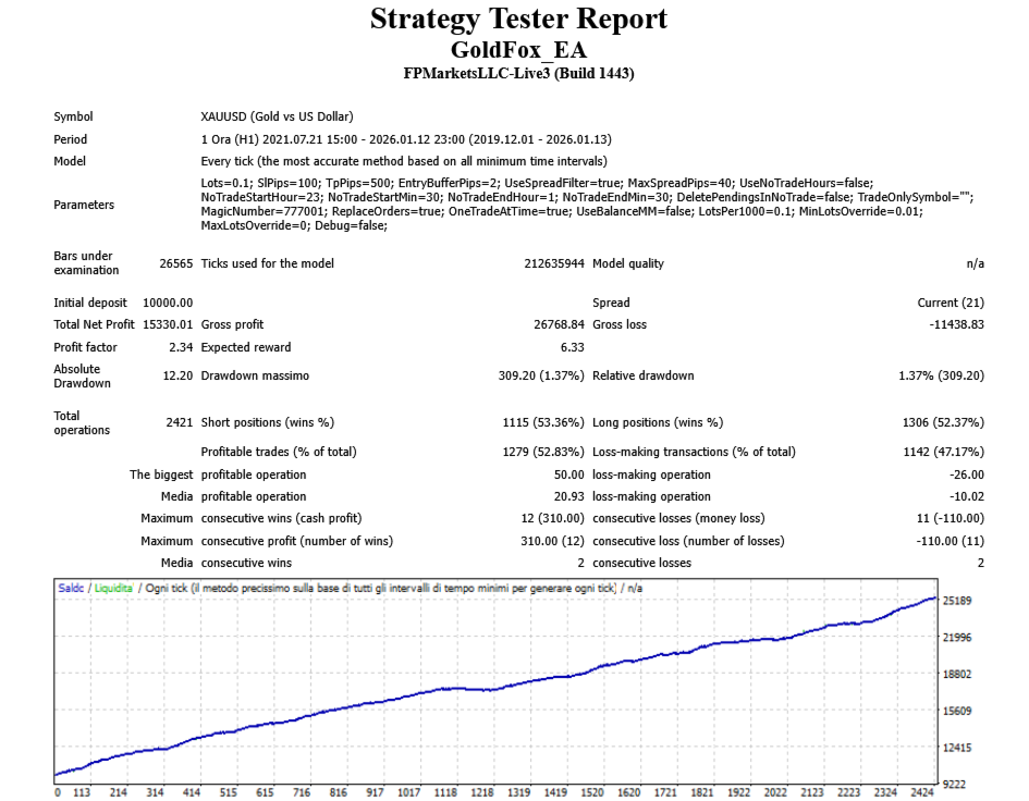 GoldFox EA è un Expert Advisor progettato specificamente per il trading su Gold (XAUUSD).
