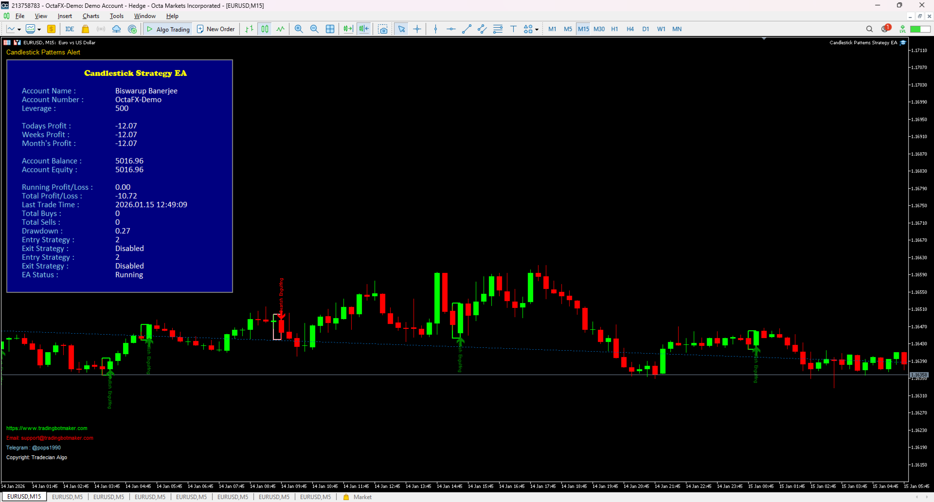 The Candlestick Pattern EA MT5 transforms subjective pattern recognition into a systematic, automated trading system with robust trend alignment and professional risk controls. Perfect for traders who want hands-free candlestick trading with institutional-grade filtering and flexible recovery mechanisms.