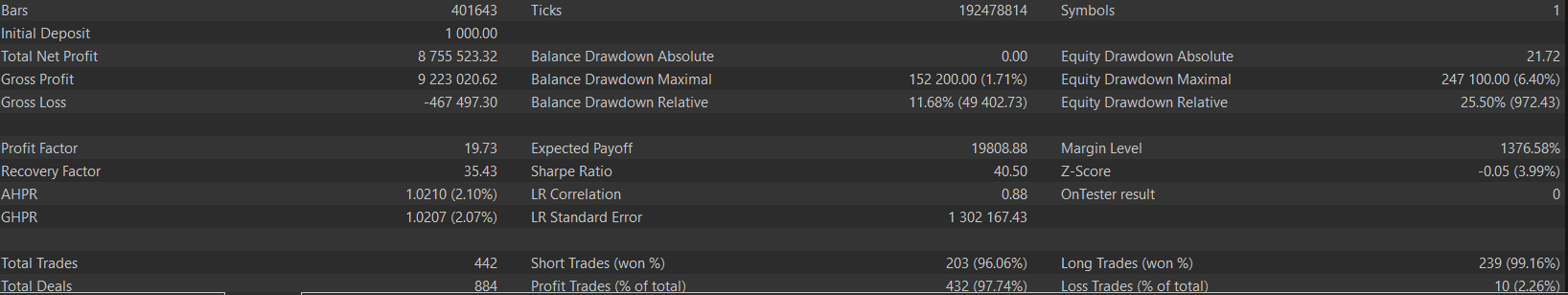 I ordered this EA and started running it from today. Its backtest results are truly excellent and impressive. Based on my conversation with the respected author, He stated that the live results are very close to the backtest.