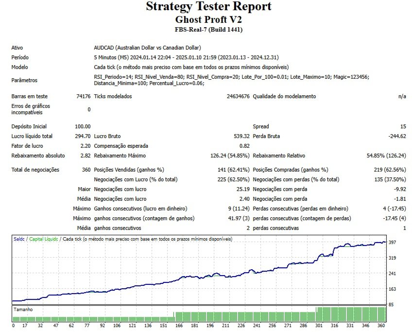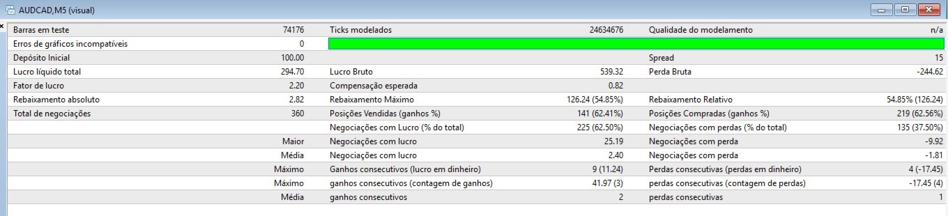 Símbolo de Foco: O algoritmo está rigorosamente otimizado para o par AUDCAD, aproveitando as características de volatilidade e reversão média deste símbolo.