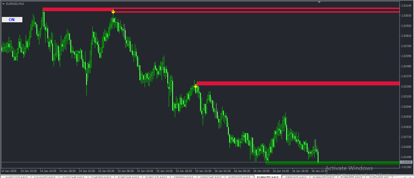 Impulse Zone Hunter integra i concetti professionali di struttura del mercato in uno strumento pulito e focalizzato sul grafico.