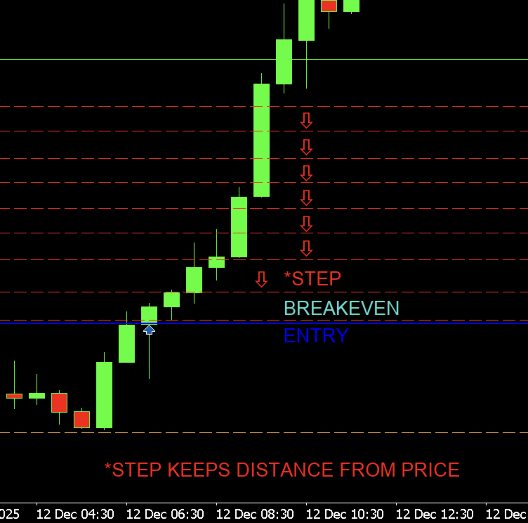 Smart Step Trailing MT5 utilizza una logica basata sull’entry, non sull’inseguimento continuo del prezzo.