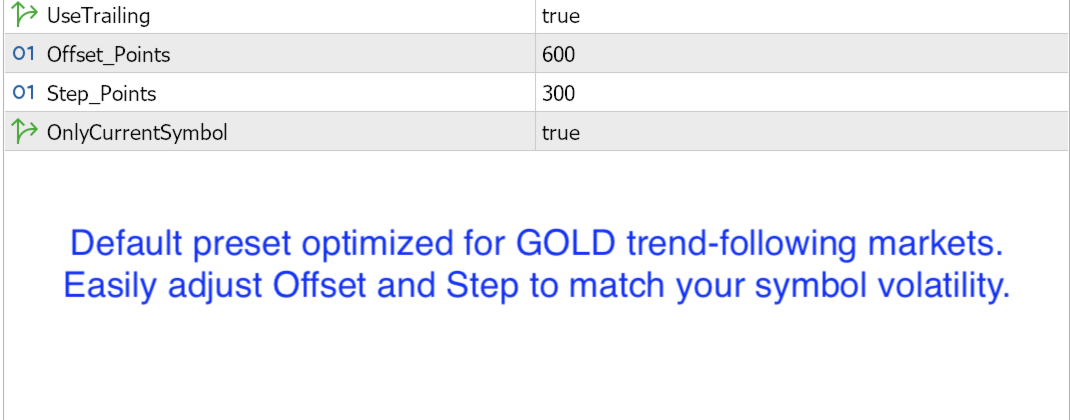 Smart Step Trailing MT5 protegge i tuoi trade seguendo il prezzo a distanza controllata, assorbendo i normali ritracciamenti invece di inseguire ogni singolo movimento.