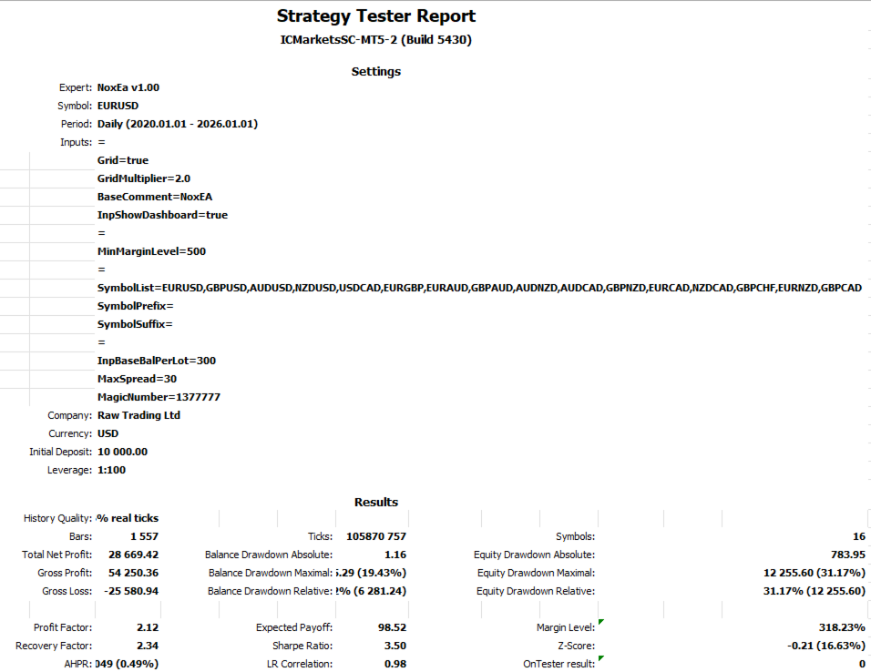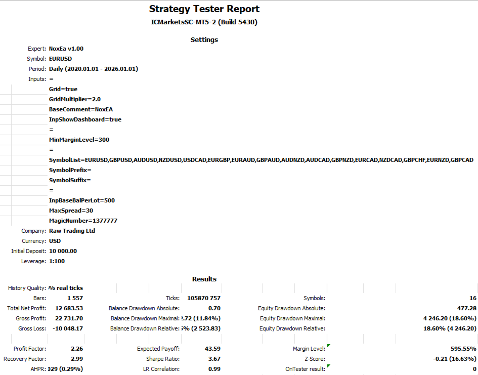 NoxEA is for the trader who is tired of the "burn and churn" cycle. If you are looking for a professional tool to manage your capital with the discipline of a fund manager, NoxEA is your Long-Term Investment Machine.