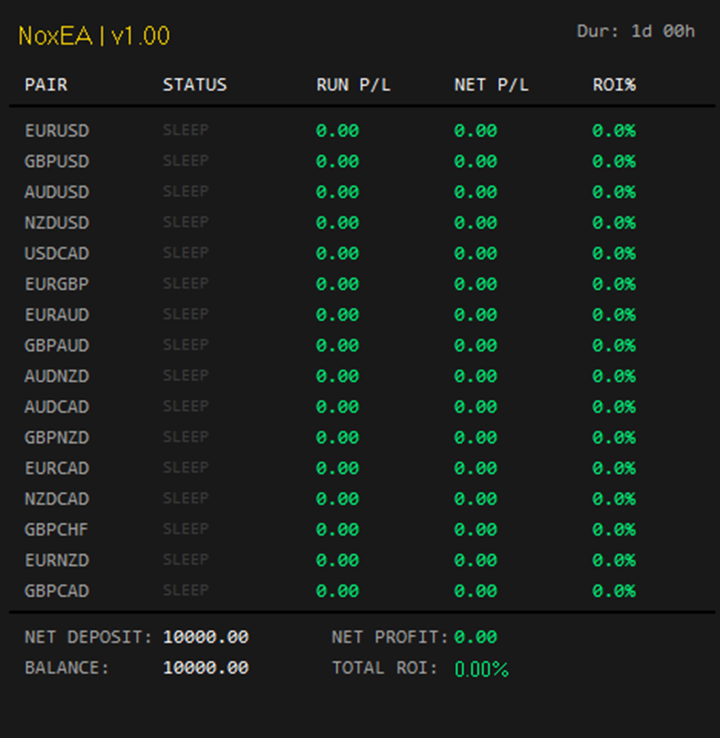 NoxEA is not a "magic button" or a high-risk gamble. It is a sophisticated, multi-currency trading engine engineered for capital preservation and consistent, long-term appreciation. Designed for the serious investor, it operates on the principle that sustainable wealth is built through logical execution, not market miracles.
