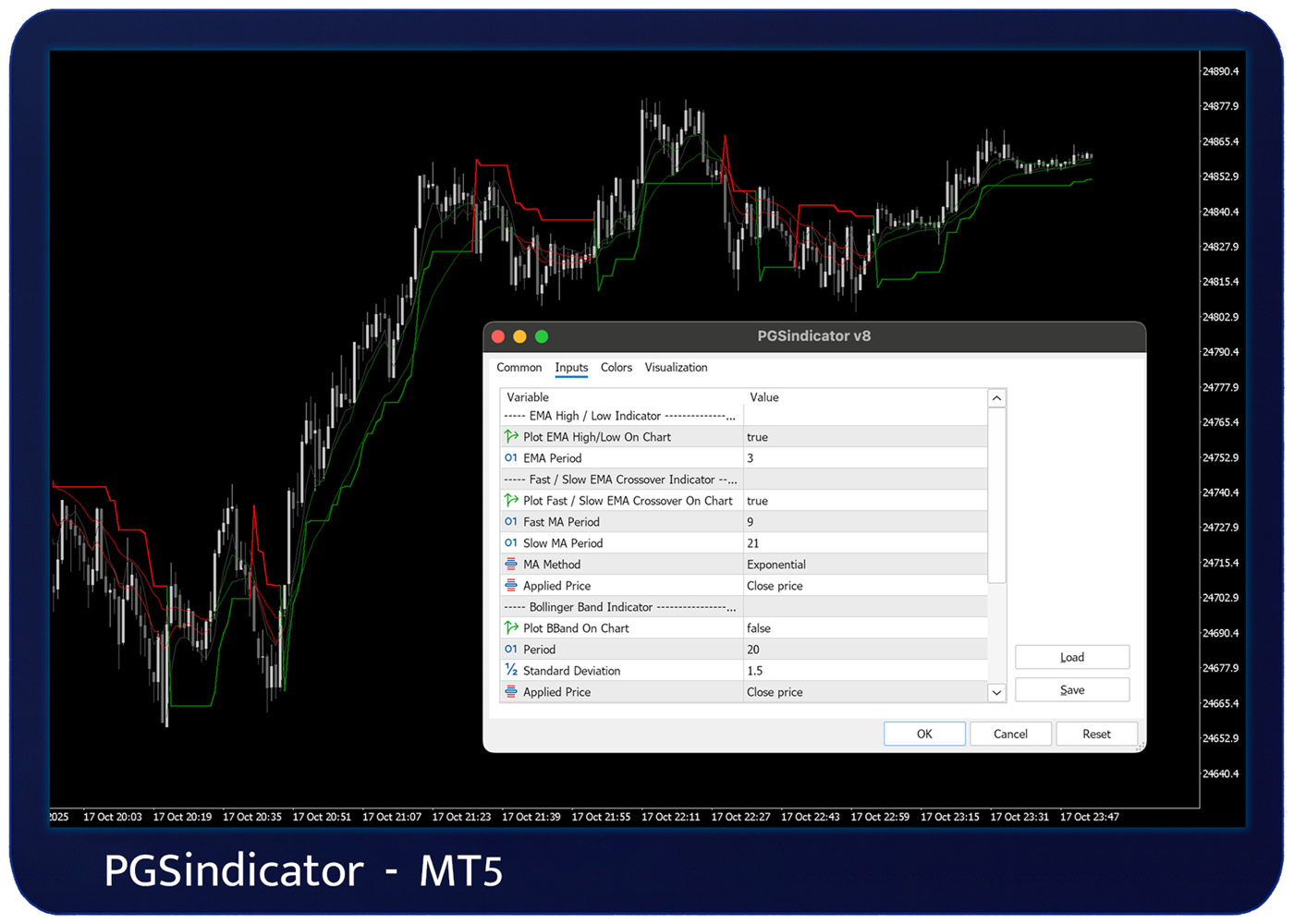 If PGSindicator is installed correctly, the panel can automatically load the indicator and adjust its parameters based on the panel settings.
