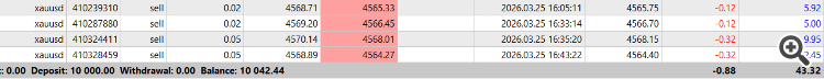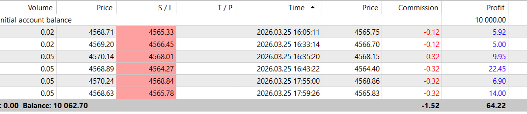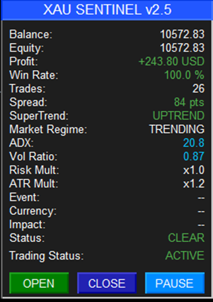 First week of live testing for XAU Sentinel on Gold (M5).