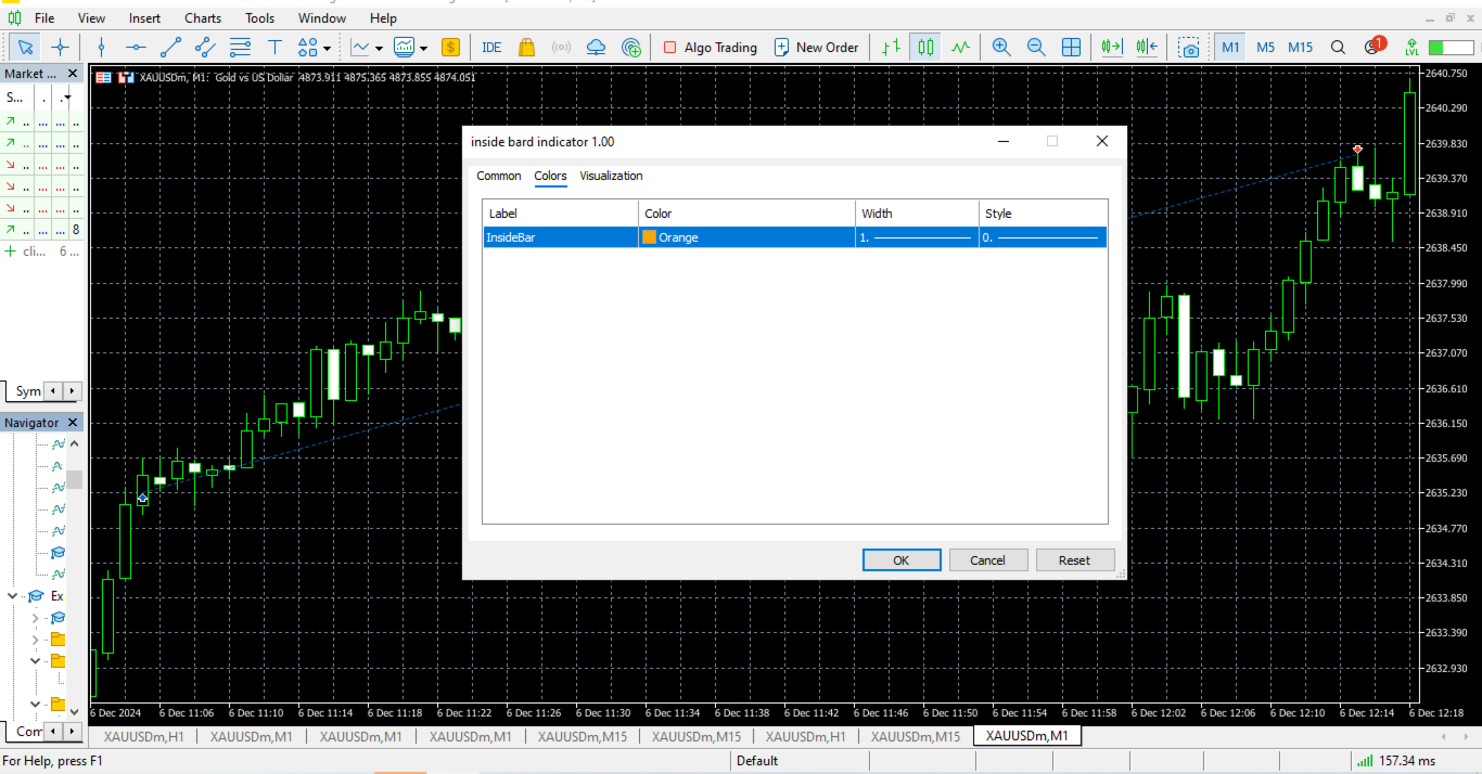 InsideBar Highlightis a professional MetaTrader 5 indicator designed to detect and highlight Inside Bars , a powerful price action pattern signaling market consolidation and potential breakout opportunities. The indicator provides a clean, visually intuitive chart experience by coloring Inside Bars in bright orange, while maintaining a sleek , distraction-free interface with optimized candle colors and removed grid lines.