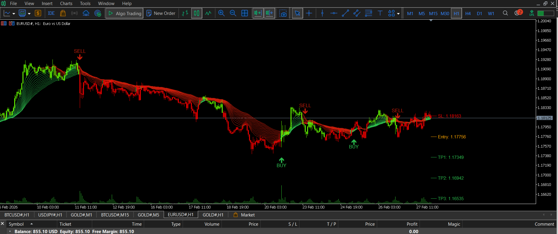 - Funziona su tutti i simboli: Forex, oro, indici, criptovalute, azioni