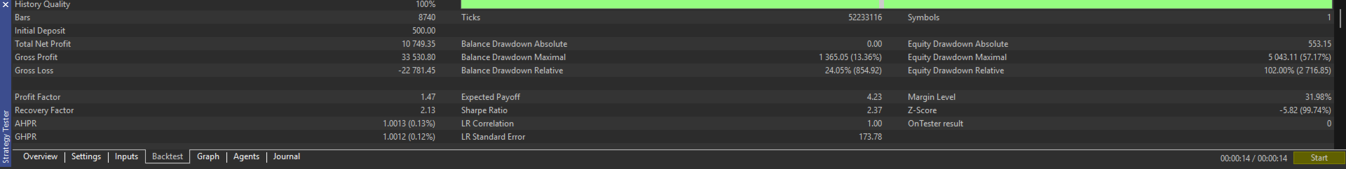 Performance: Track record dimostrato nel trasformare un deposito di 50$ in 6.215,71$ di profitto netto in 12 mesi su XAUUSD.