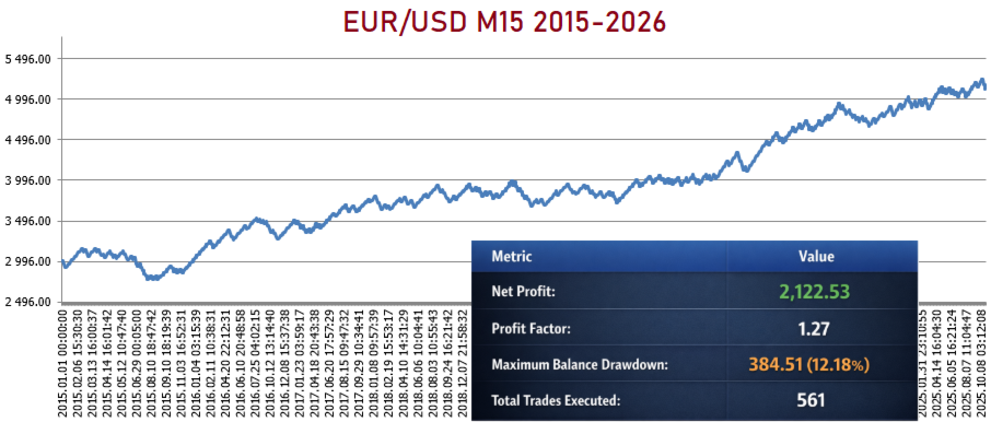 The algorithm includes an adaptive filter that allows the strategy to be fine-tuned over time, helping it remain effective across different market conditions and reducing the natural decay of rigid systems.