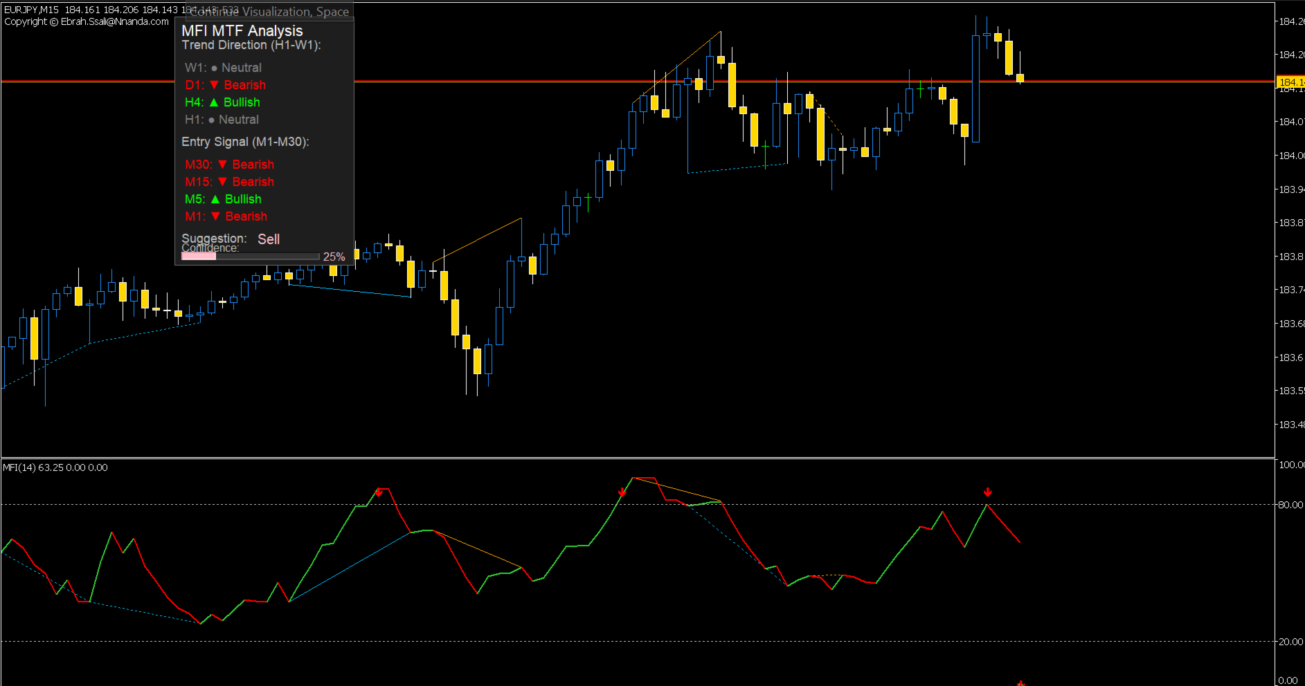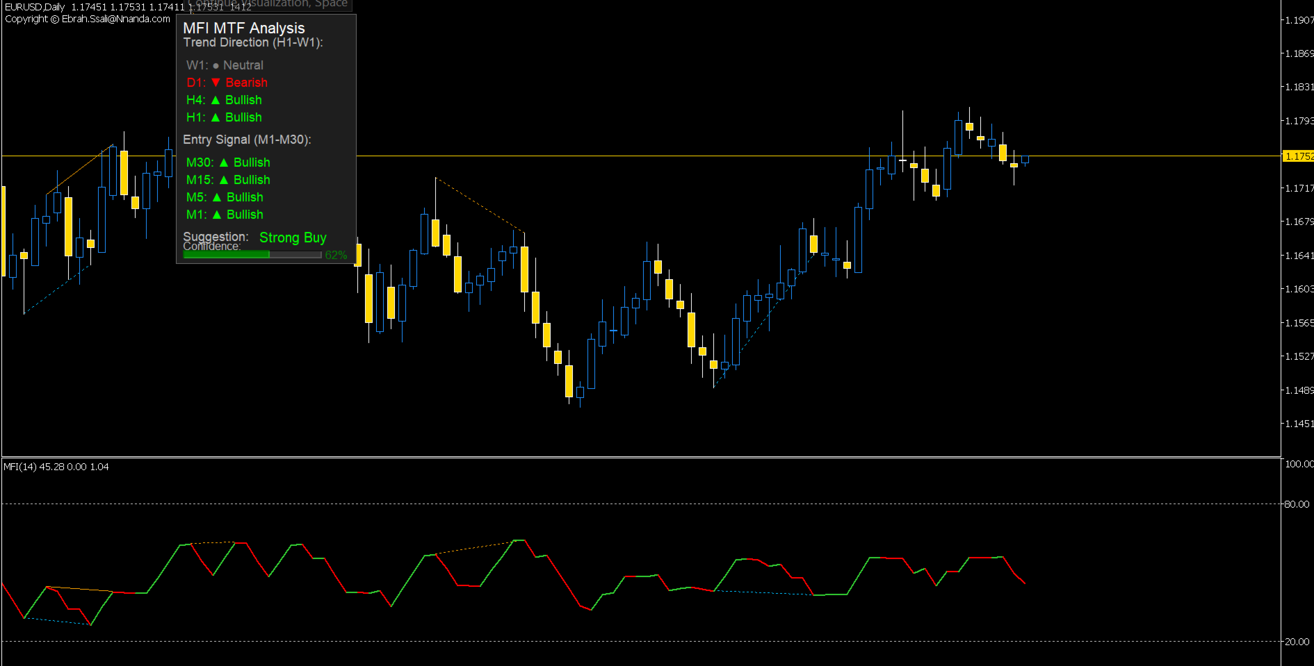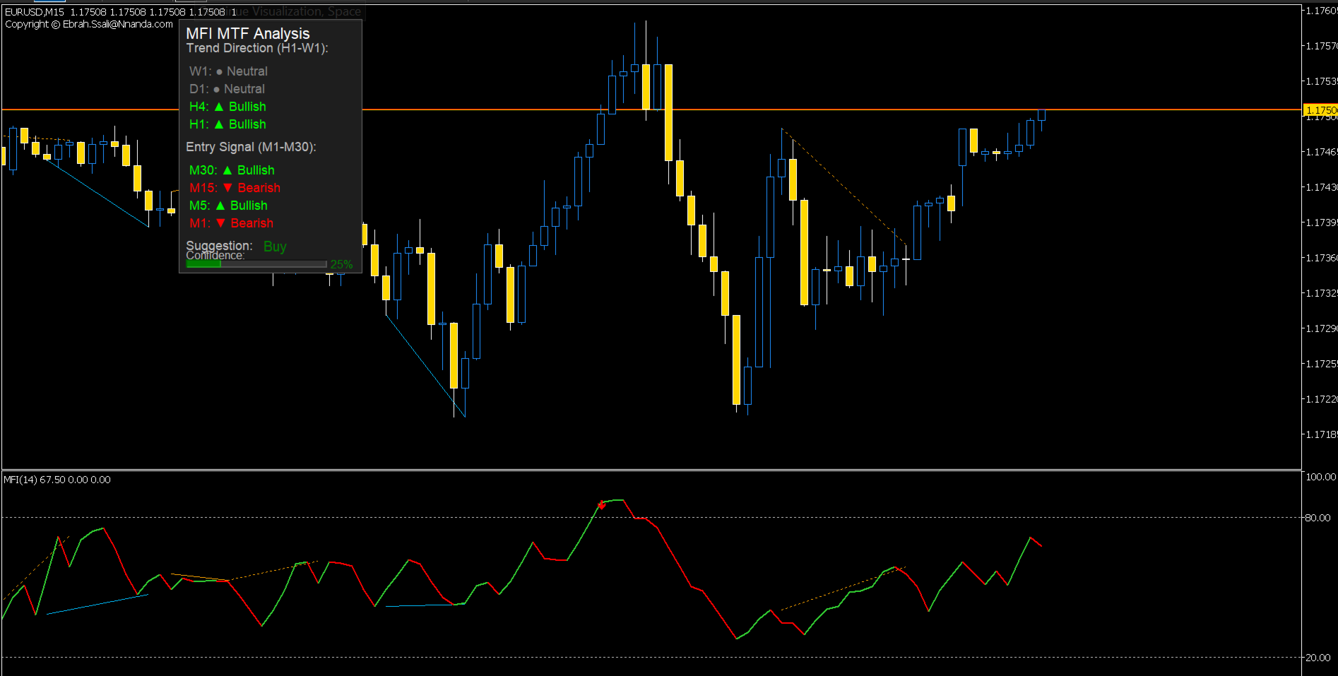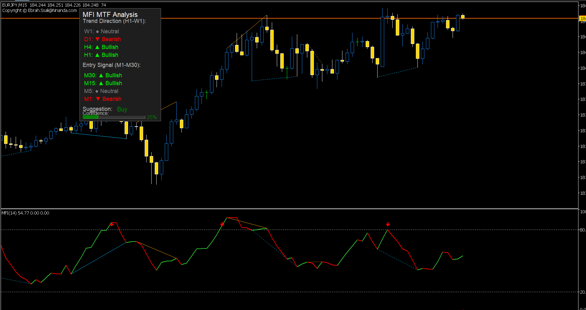 • Buffer Access: All arrow signals (Buy/Sell) and MFI values are stored in accessible buffers (BufferBuy, BufferSell, ExtMFIBuffer).