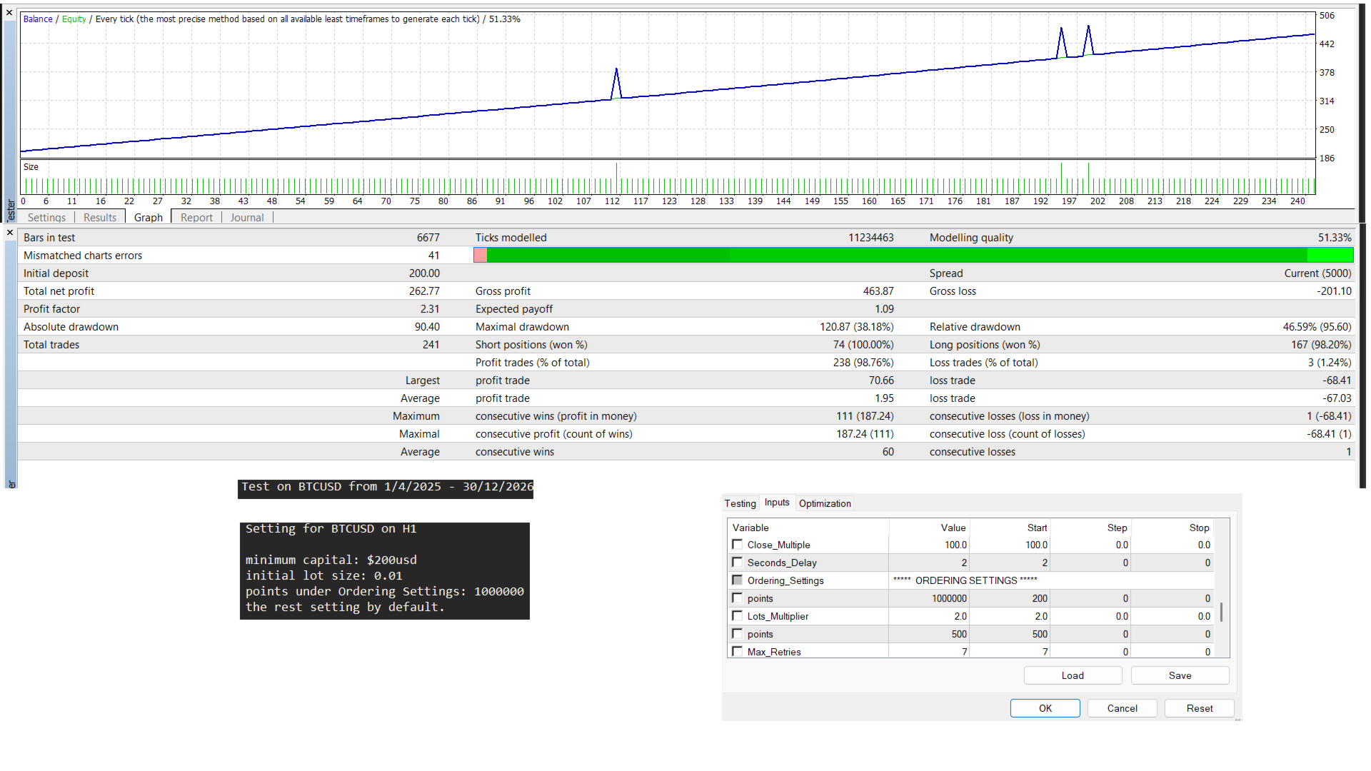 This EA is designed for advanced traders. Always test on a demo account and adjust parameters to match your symbol, timeframe, and risk tolerance.