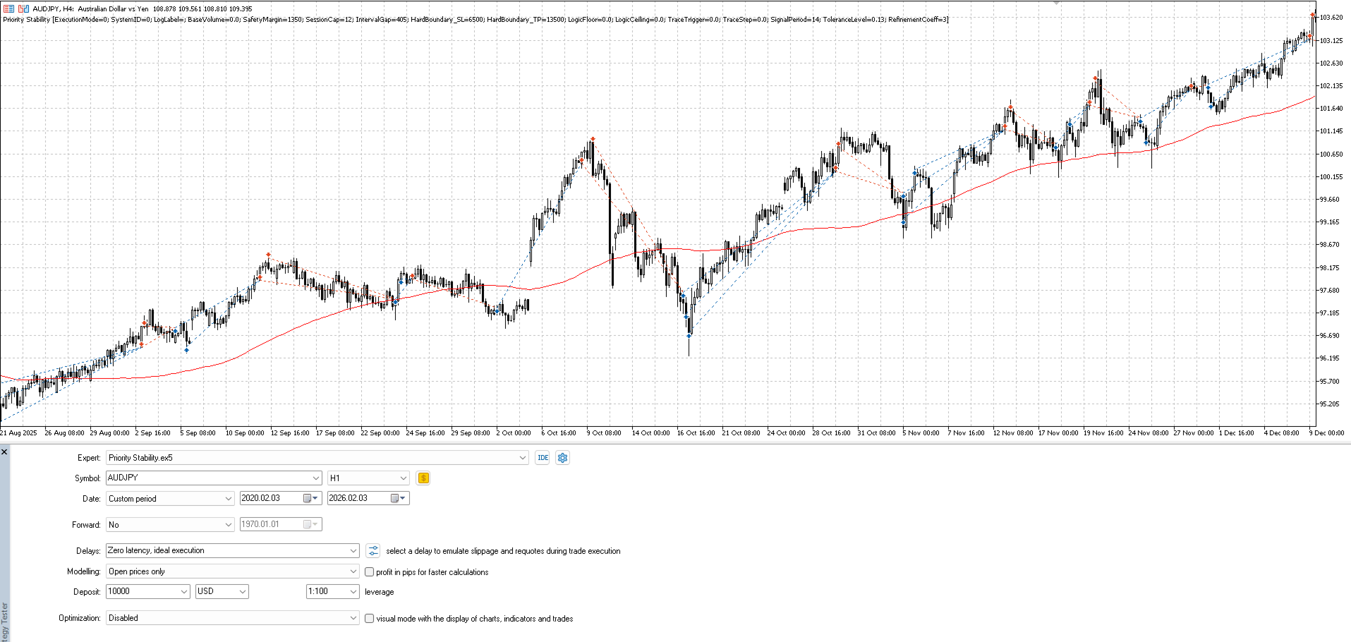 The Priority Stability framework is based on a multi-factor analysis of market dynamics. Rather than forecasting future price movements, the algorithm reacts to real-time data flow using integrated noise-filtering modules.