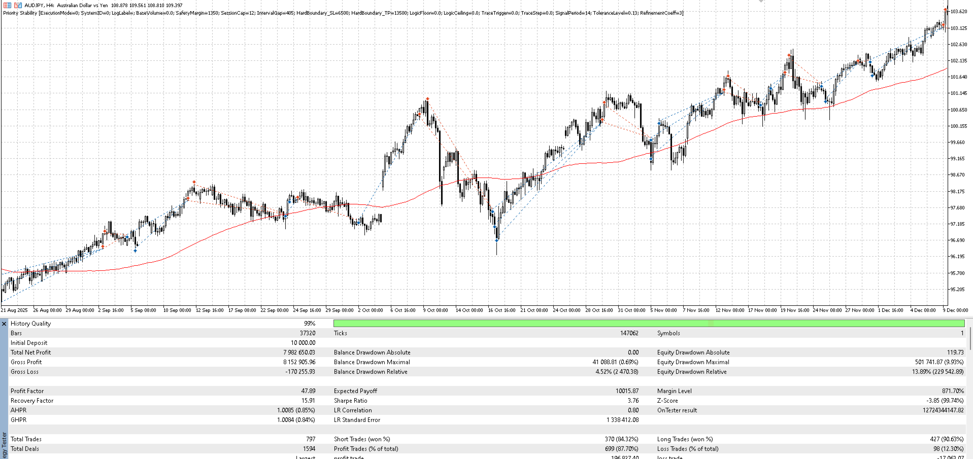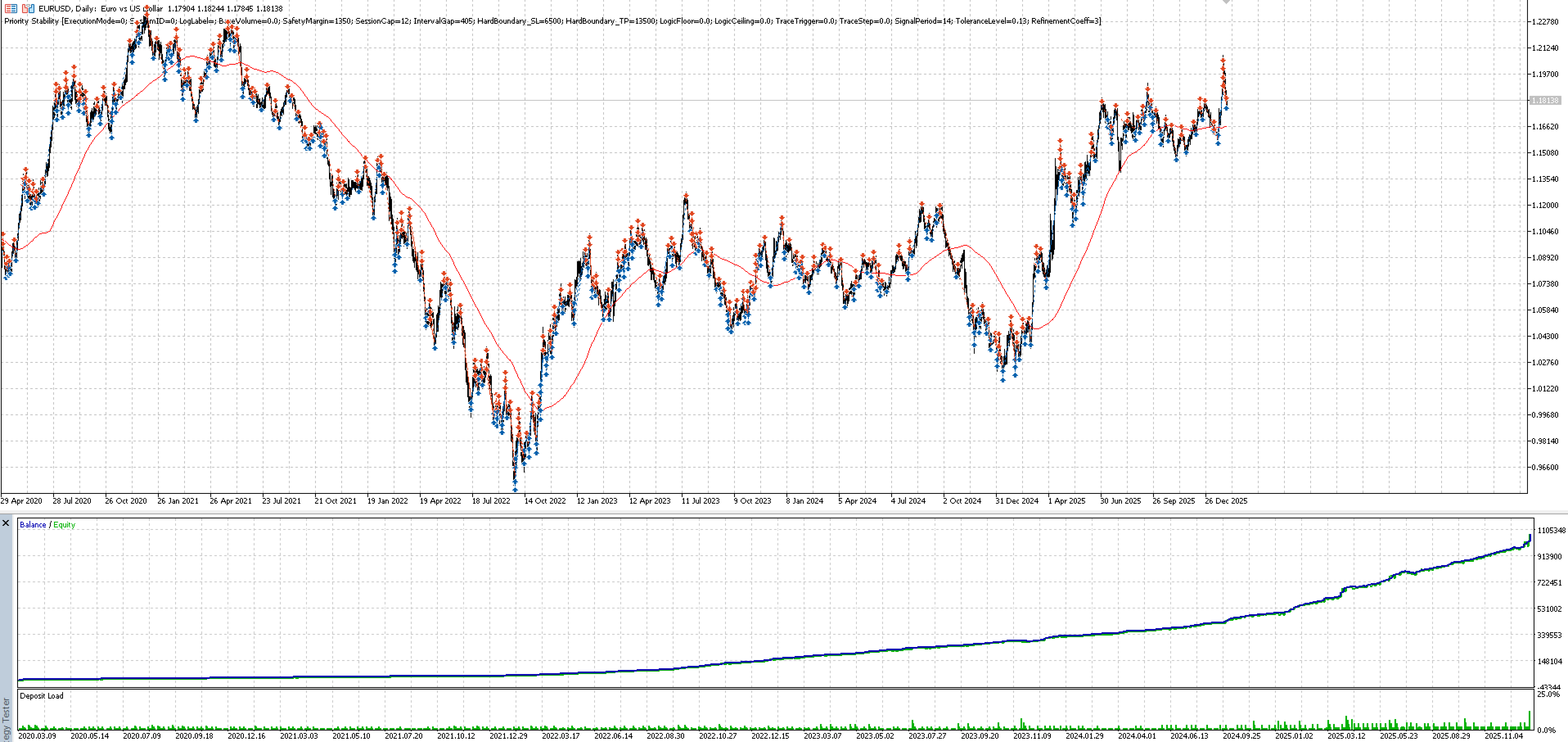 Trading in financial markets involves a high level of risk and may lead to the loss of invested capital. The Priority Stability algorithm is a software tool for strategy automation and does not eliminate market risks. Past performance on historical data is not a reliable indicator of future results.