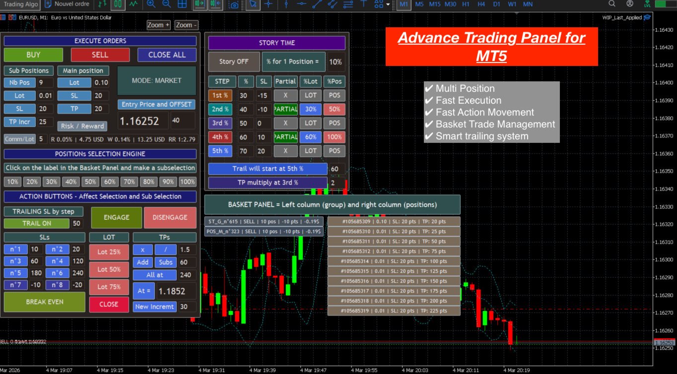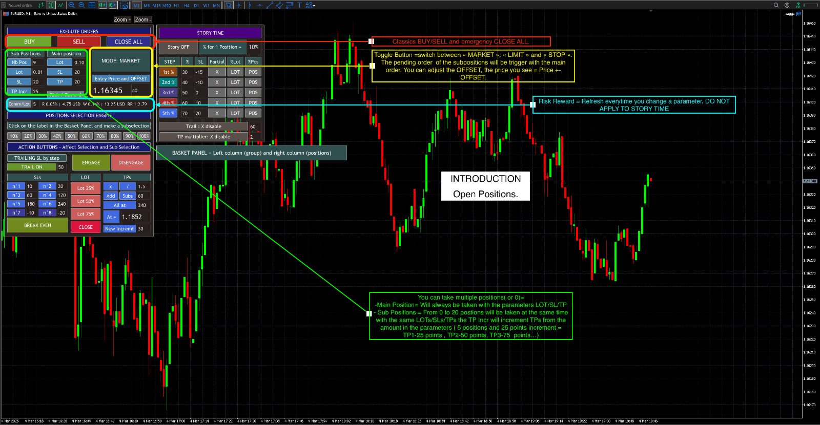 Questo Expert Advisor è un pannello avanzato di gestione del trading per MetaTrader 5, progettato per facilitare lo scalping e la gestione di più posizioni.