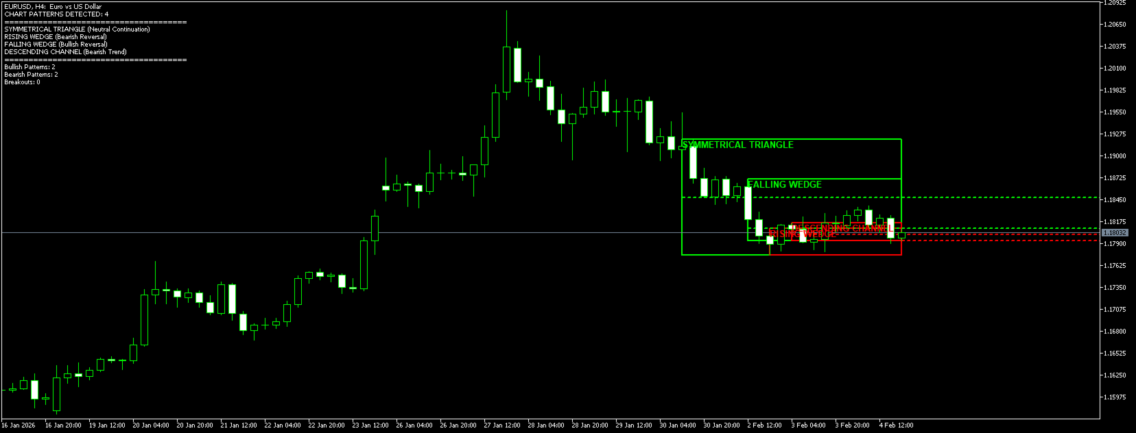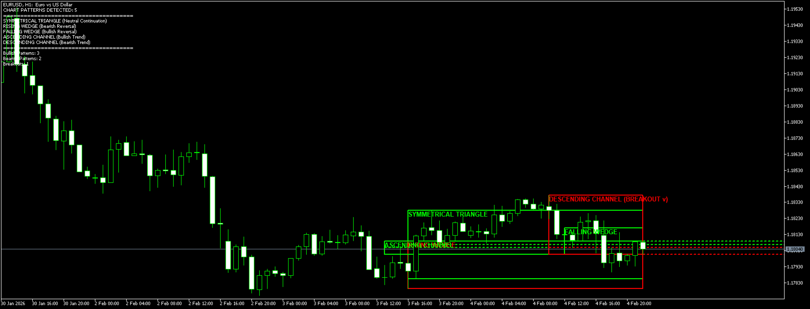 Chart Pattern Structure is a professional technical analysis indicator designed to automatically detect and visualize classic chart patterns directly on the MetaTrader 5 chart.