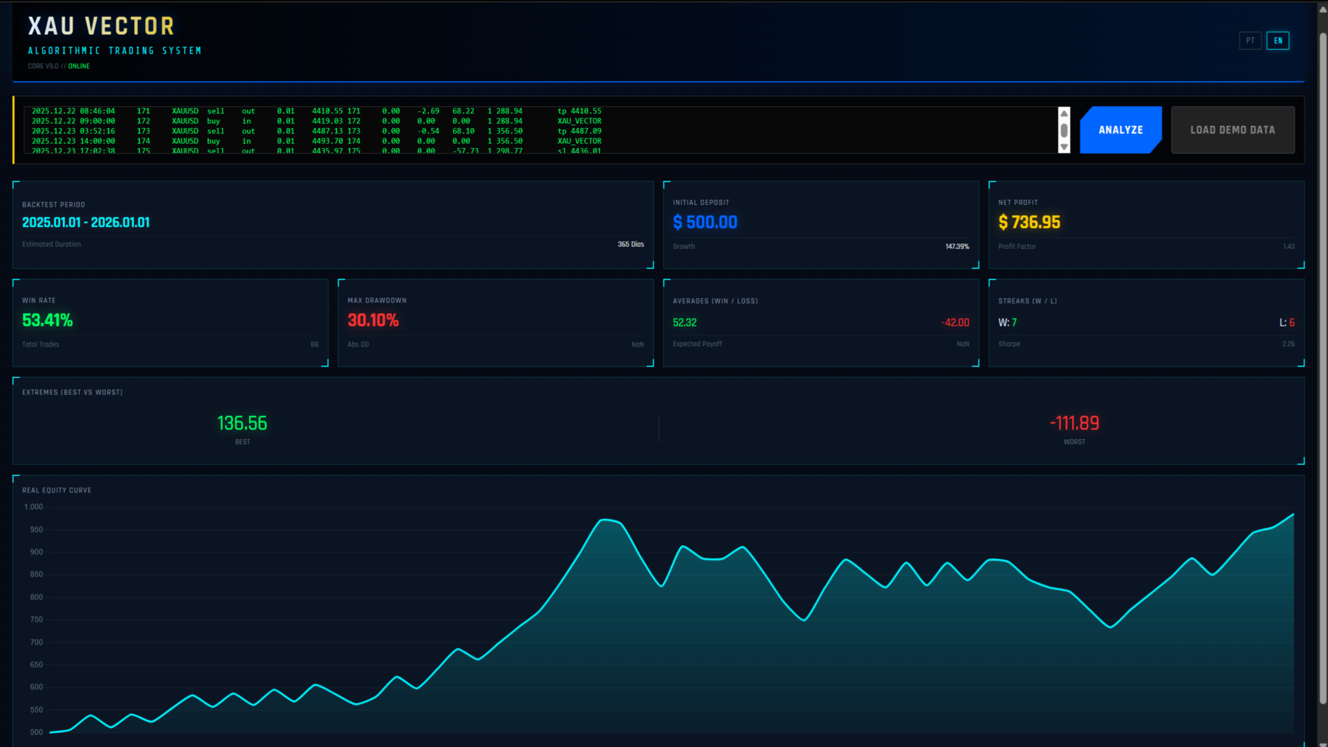 Specializzato in XAUUSD: Tutta la logica interna è stata calibrata specificamente per il comportamento unico dell'Oro.