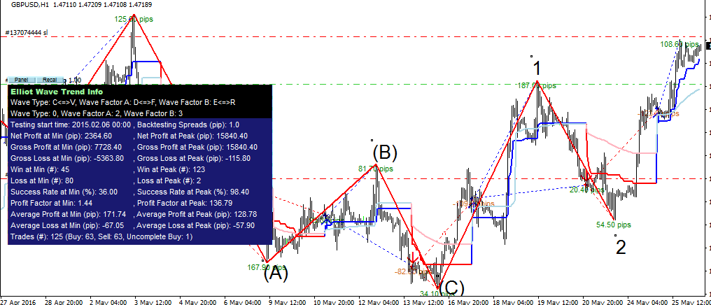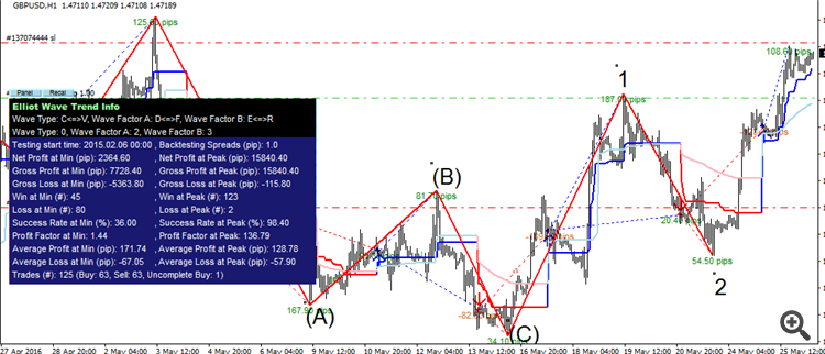 In fact, the combination of Elliott Wave Trend + Sideways Market Analyser will provide the fantastic performance. Below screenshots is only produced using Elliott Wave Trend tool alone. But the performance of Elliott Wave trend can be enhanced with Sideways Market Analyser. When you use both, just optimize them for the best setting for both tools. Then execute your orders if both signal agrees from both tools.