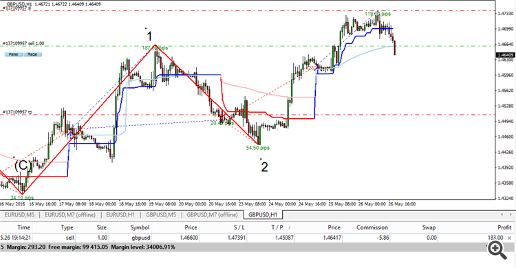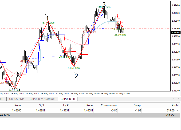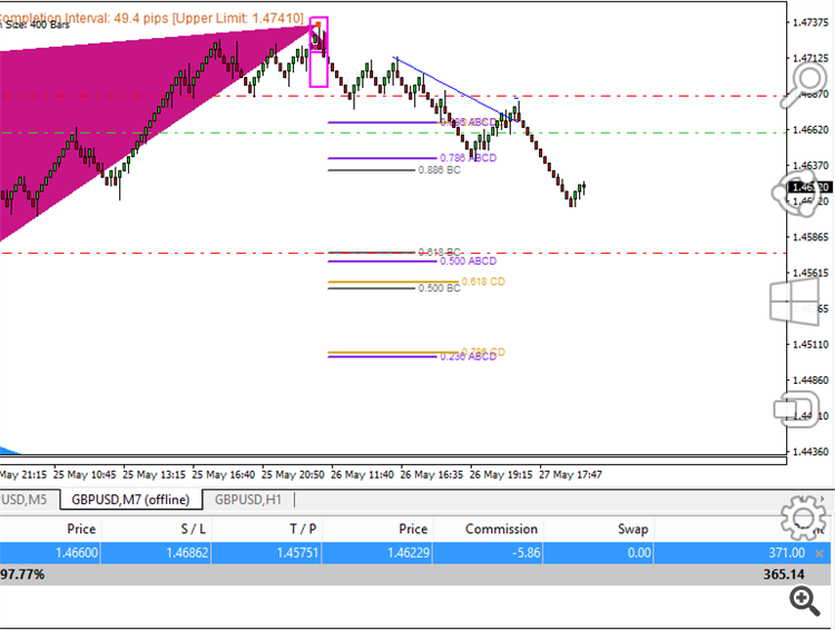 Note that this is a combined strategy between Eliott Wave trend and Harmonic Pattern plus and real time renko.